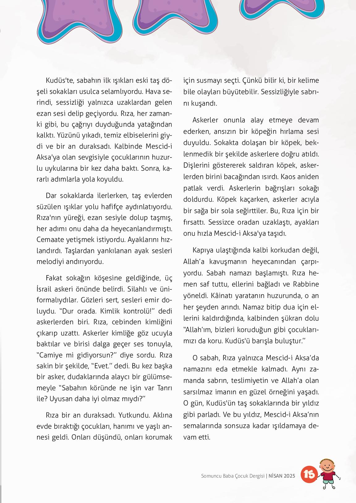Kudüs'te, sabahın ilk ışıkları eski taş döşeli sokakları usulca selamlıyordu. Hava serindi, sessizliği yalnızca uzaklardan gelen ezan sesi delip geçiyordu. Rıza, her zamanki gibi, bu çağrıyı duyduğunda yatağından kalktı. Yüzünü yıkadı, temiz elbiselerini giydi ve bir an duraksadı. Kalbi...