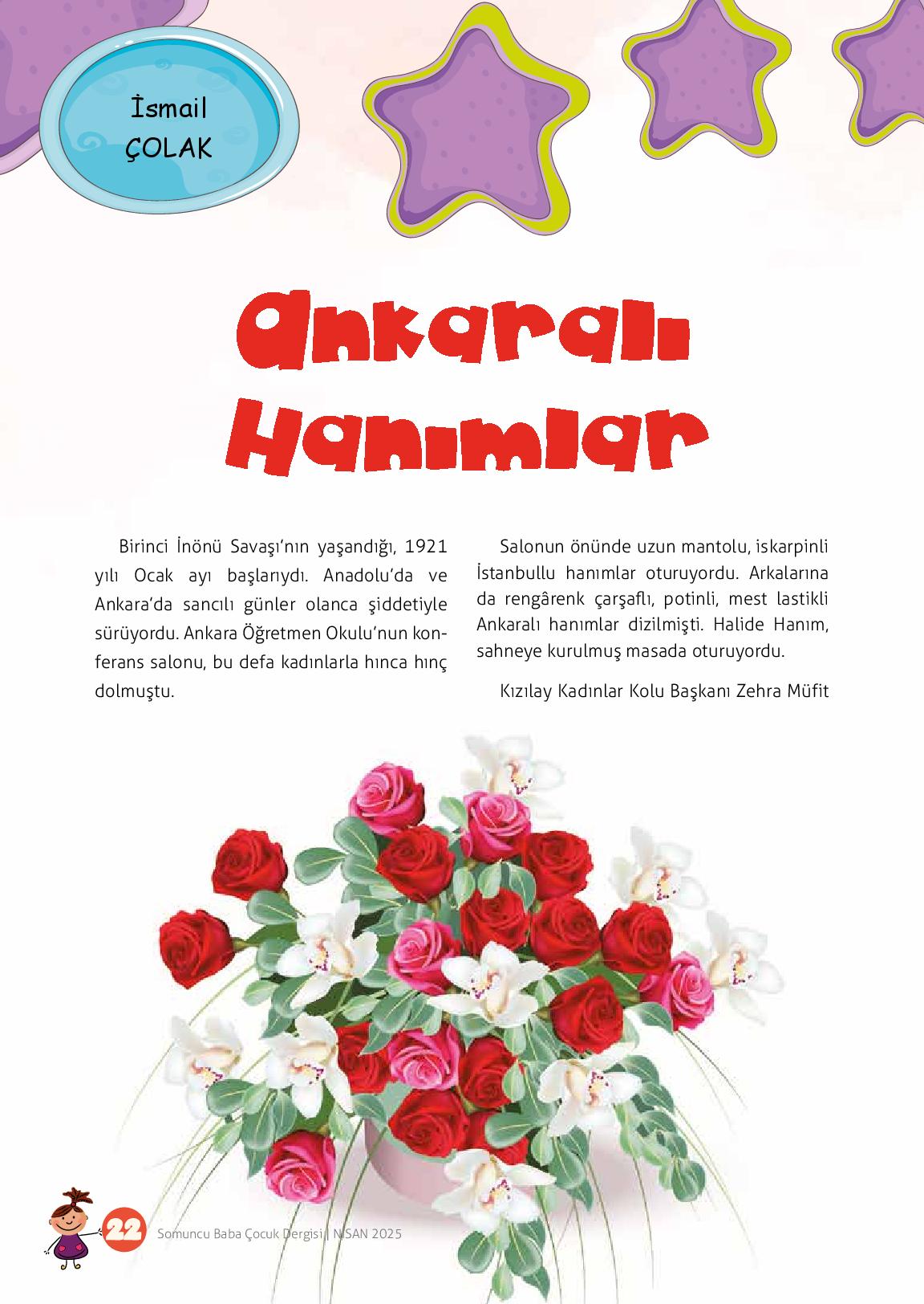 Birinci İnönü Savaşı’nın yaşandığı, 1921 yılı Ocak ayı başlarıydı. Anadolu’da ve Ankara’da sancılı günler olanca şiddetiyle sürüyordu. Ankara Öğretmen Okulu’nun konferans salonu, bu defa kadınlarla hınca hınç dolmuştu.Salonun önünde uzun mantolu, iskarpinli İstanbullu hanımlar oturu...
