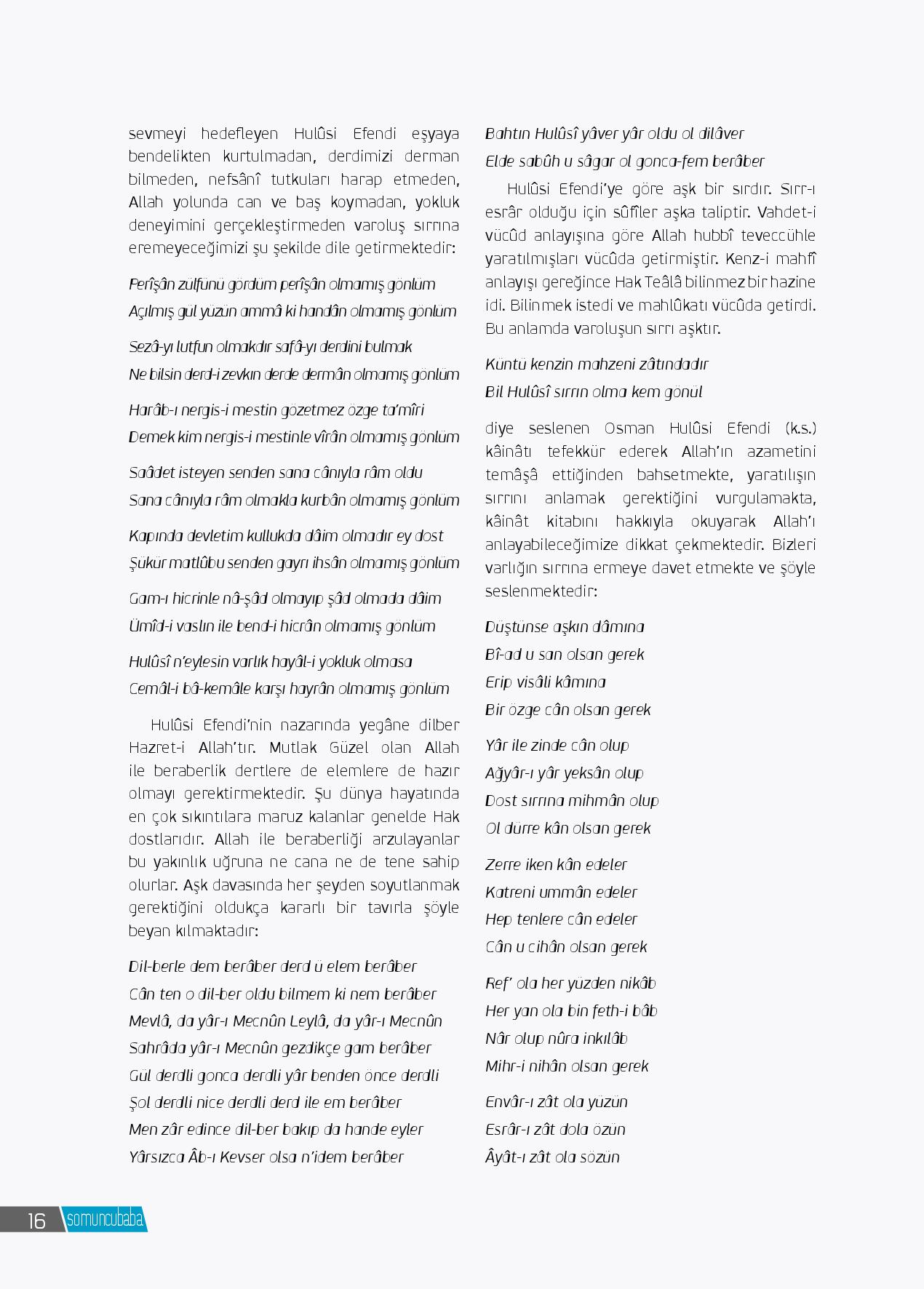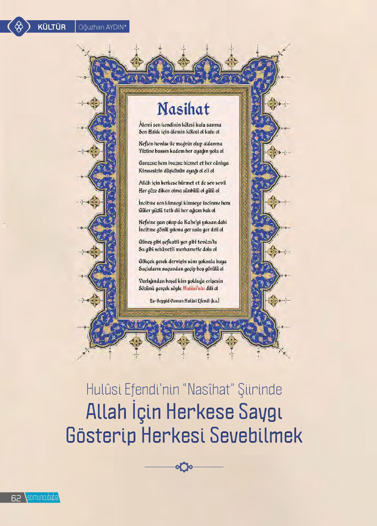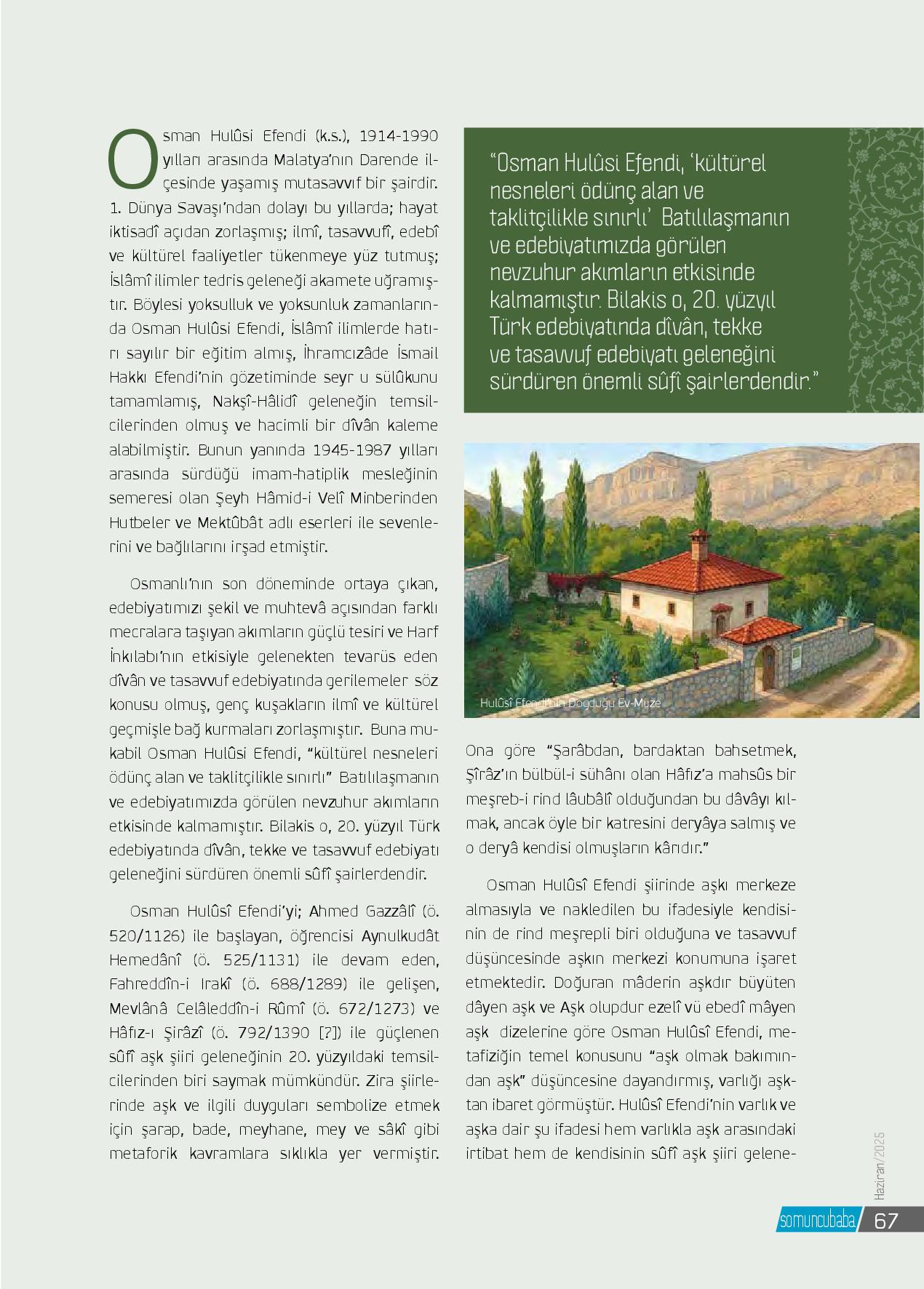 Osman Hulûsi Efendi (k.s.), 1914-1990 yılları arasında Malatya’nın Darende ilçesinde yaşamış mutasavvıf bir şairdir. 1. Dünya Savaşı’ndan dolayı bu yıllarda; hayat iktisadî açıdan zorlaşmış; ilmî, tasavvufî, edebî ve kültürel faaliyetler tükenmeye yüz...