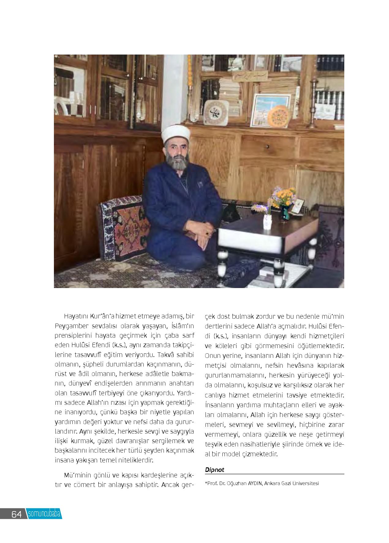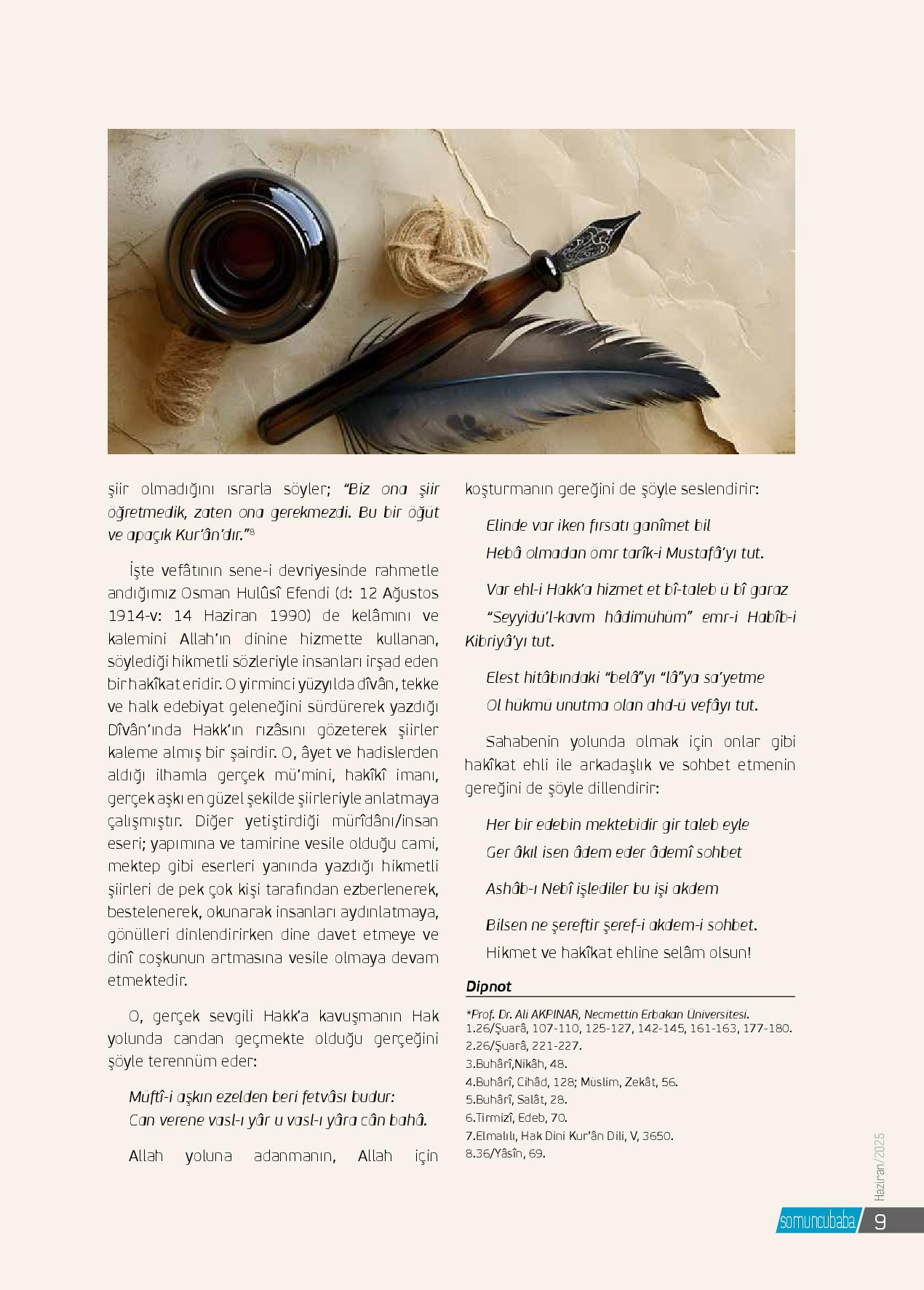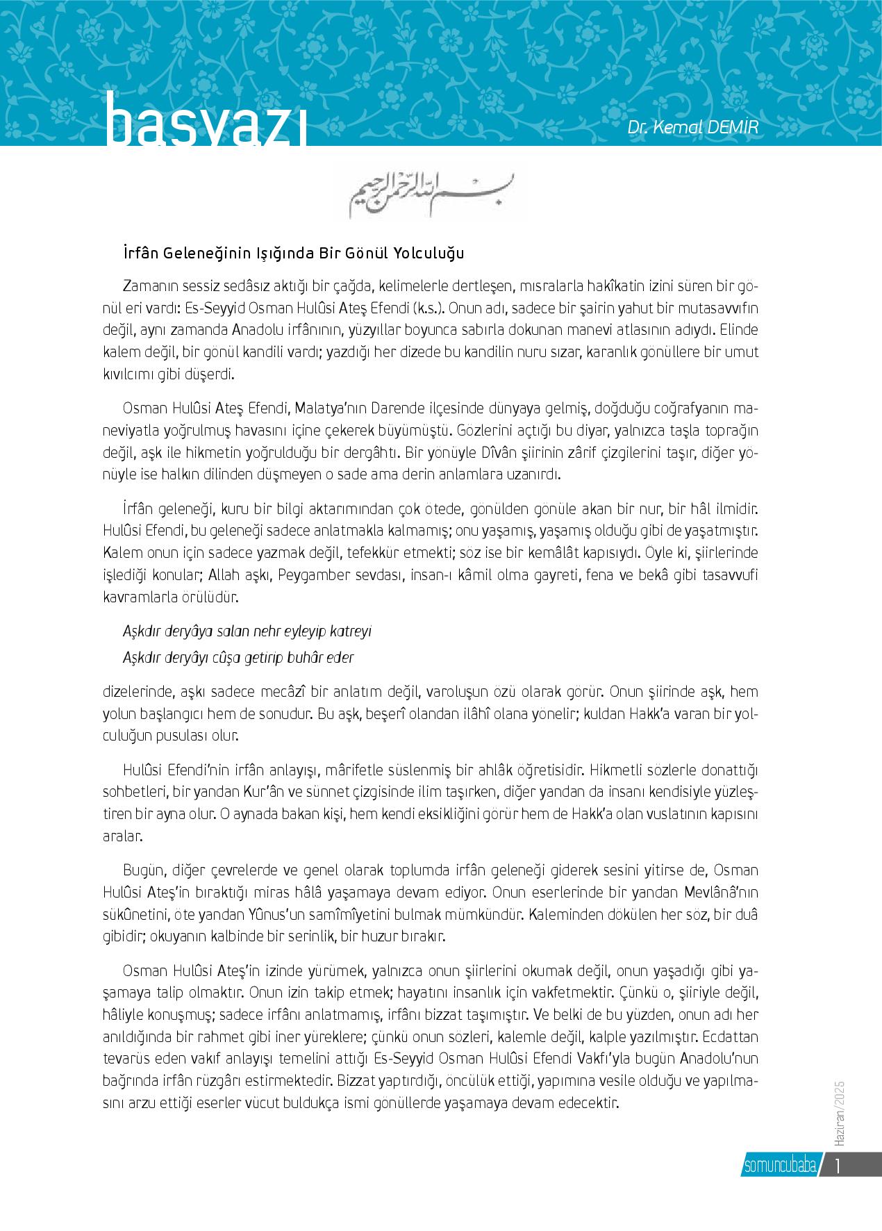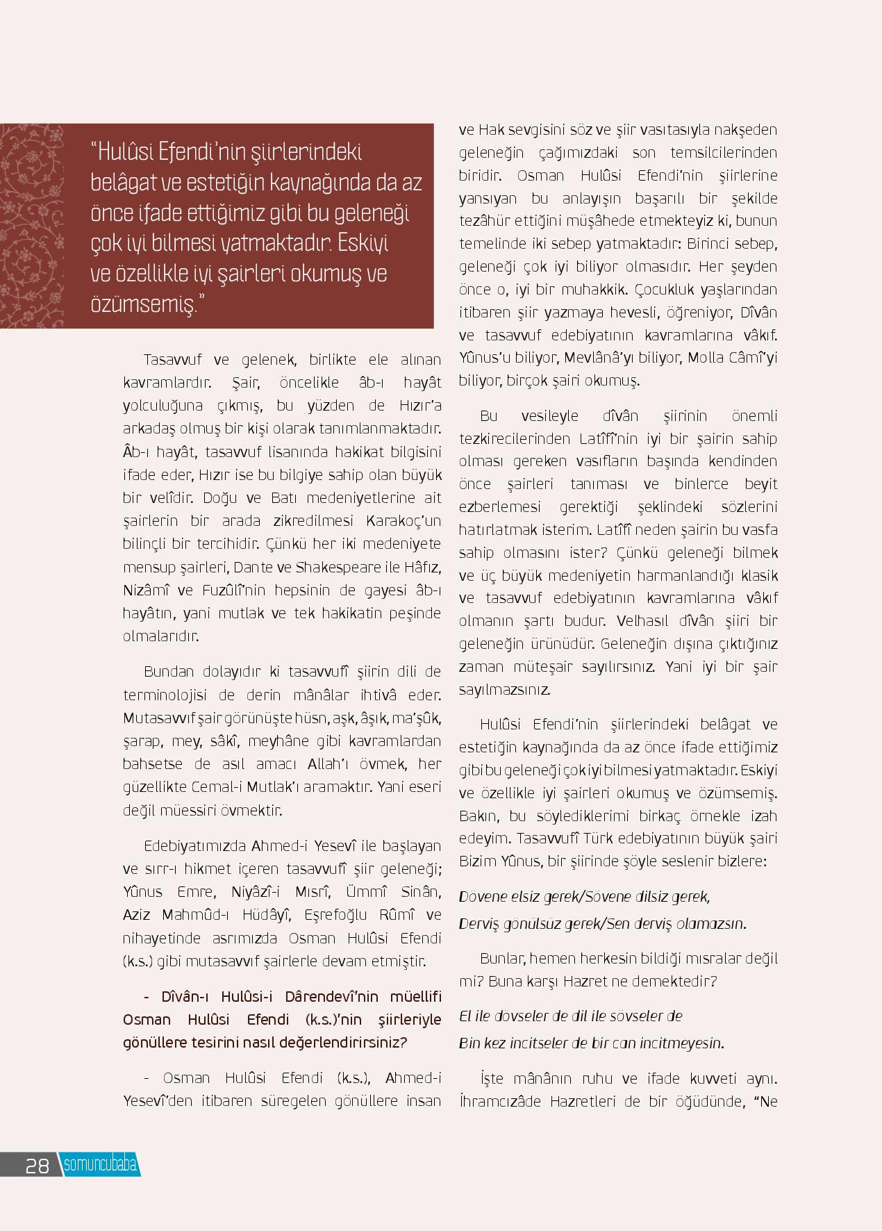 Osman Hulûsi Efendi (k.s.), 1914-1990 yılları arasında Malatya’nın Darende ilçesinde yaşamış mutasavvıf bir şairdir. 1. Dünya Savaşı’ndan dolayı bu yıllarda; hayat iktisadî açıdan zorlaşmış; ilmî, tasavvufî, edebî ve kültürel faaliyetler tükenmeye yüz...