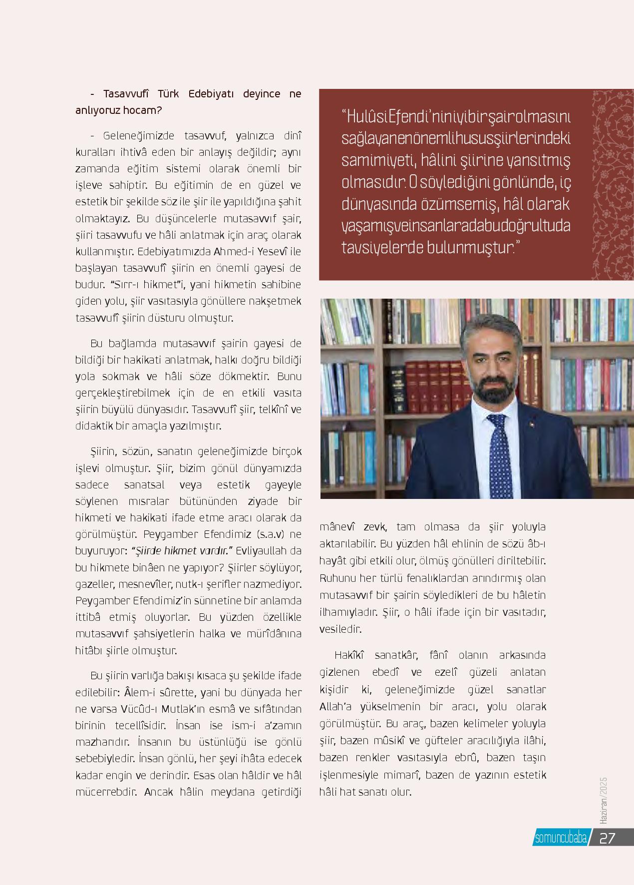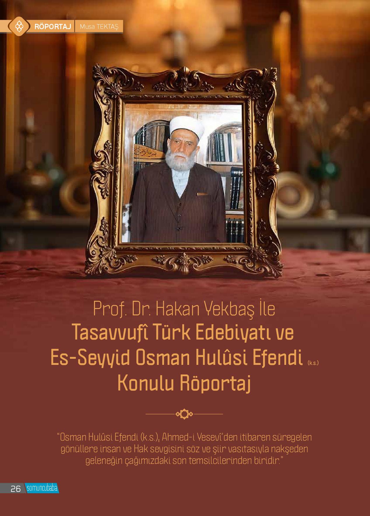 Tasavvufî Türk Edebiyatı ve Es-Seyyid Osman Hulûsi Efendi (k.s.)- Tasavvufî Türk Edebiyatı deyince ne anlıyoruz hocam? - Geleneğimizde tasavvuf, yalnızca dinî kuralları ihtivâ eden bir anlayış değildir; aynı zamanda eğitim sistemi olarak önemli bir işleve sahiptir....