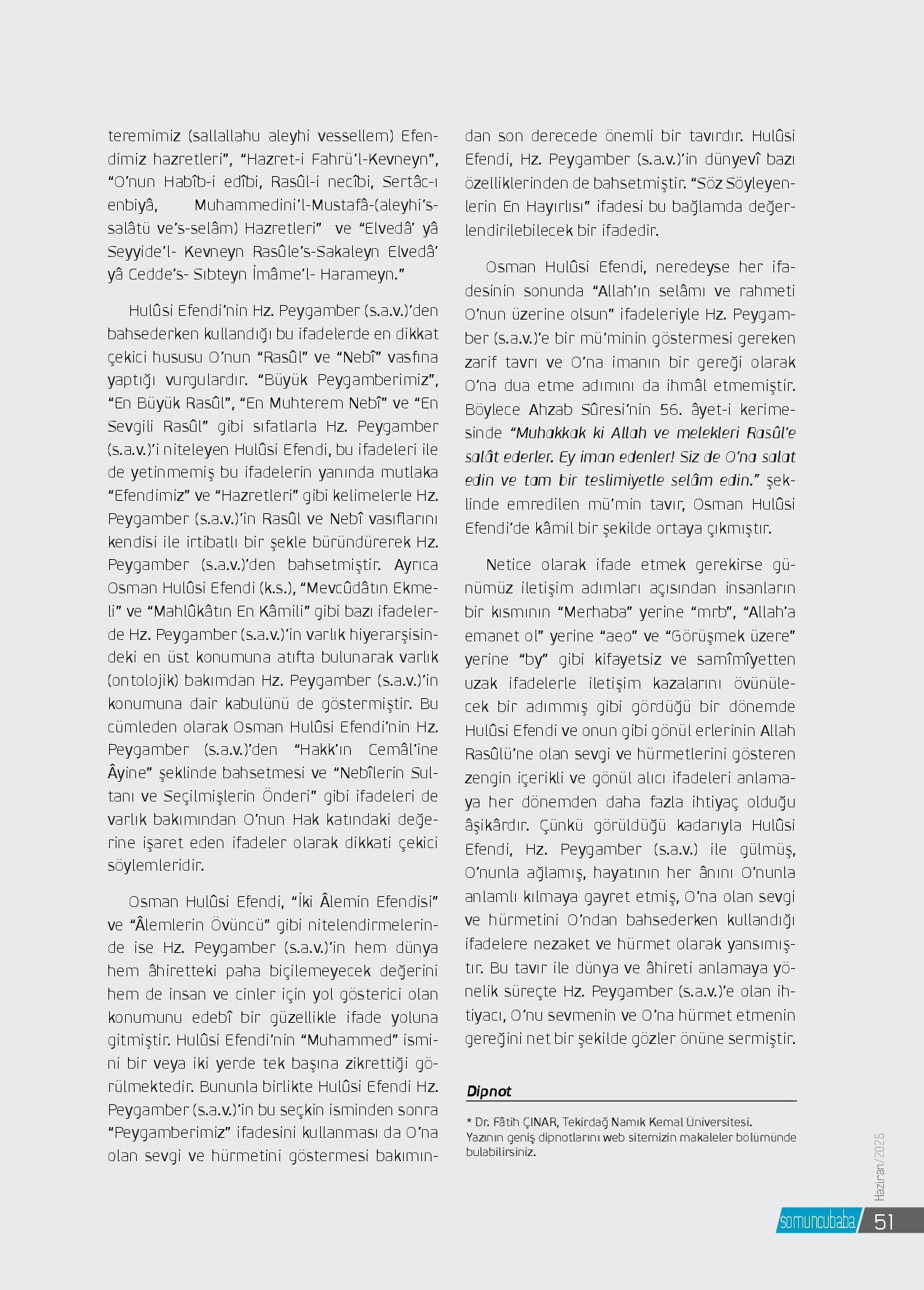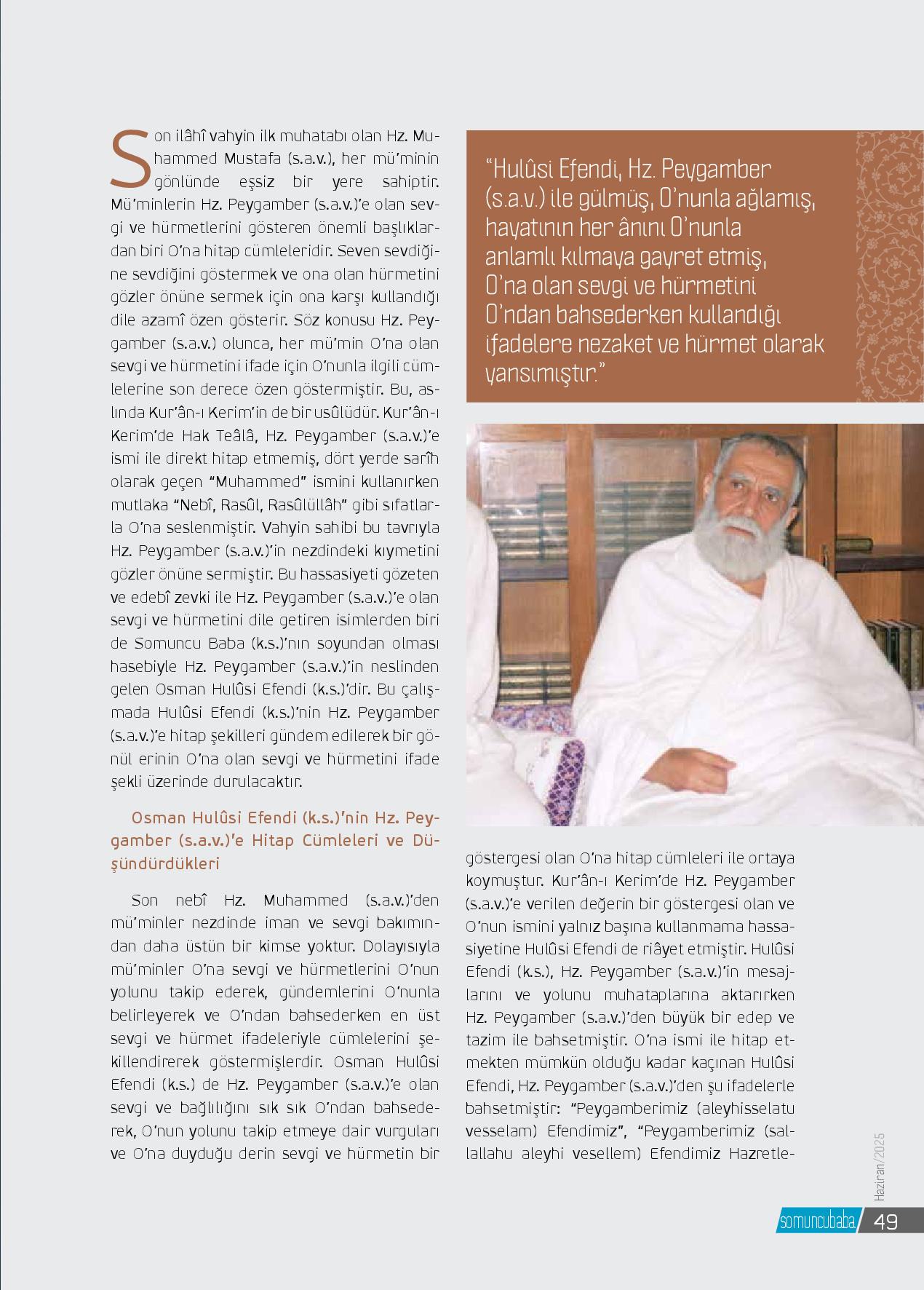 Es-Seyyid Osman Hulûsi Efendi’nin Hz. Peygamber’e Hitap Cümleleri