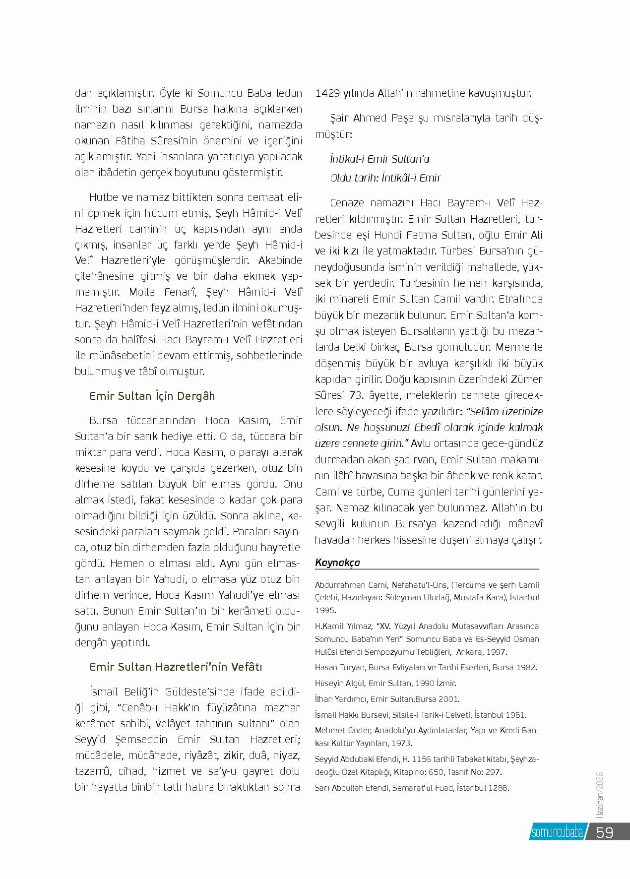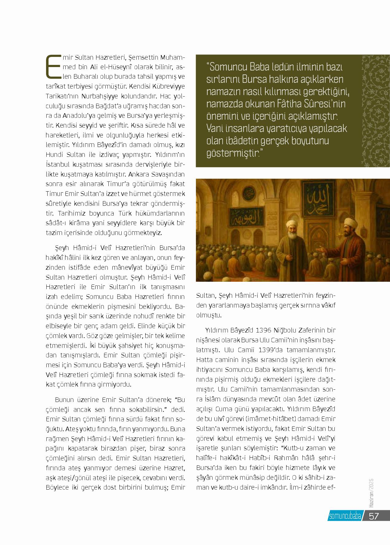 Emir Sultan Hazretleri, Şemsettin Muhammed bin Ali el-Hüseynî olarak bilinir, aslen Buharalı olup burada tahsil yapmış ve tarîkat terbiyesi görmüştür. Kendisi Kübreviyye Tarikatı’nın Nurbahşiyye kolundandır. Hac yolculuğu sırasın...