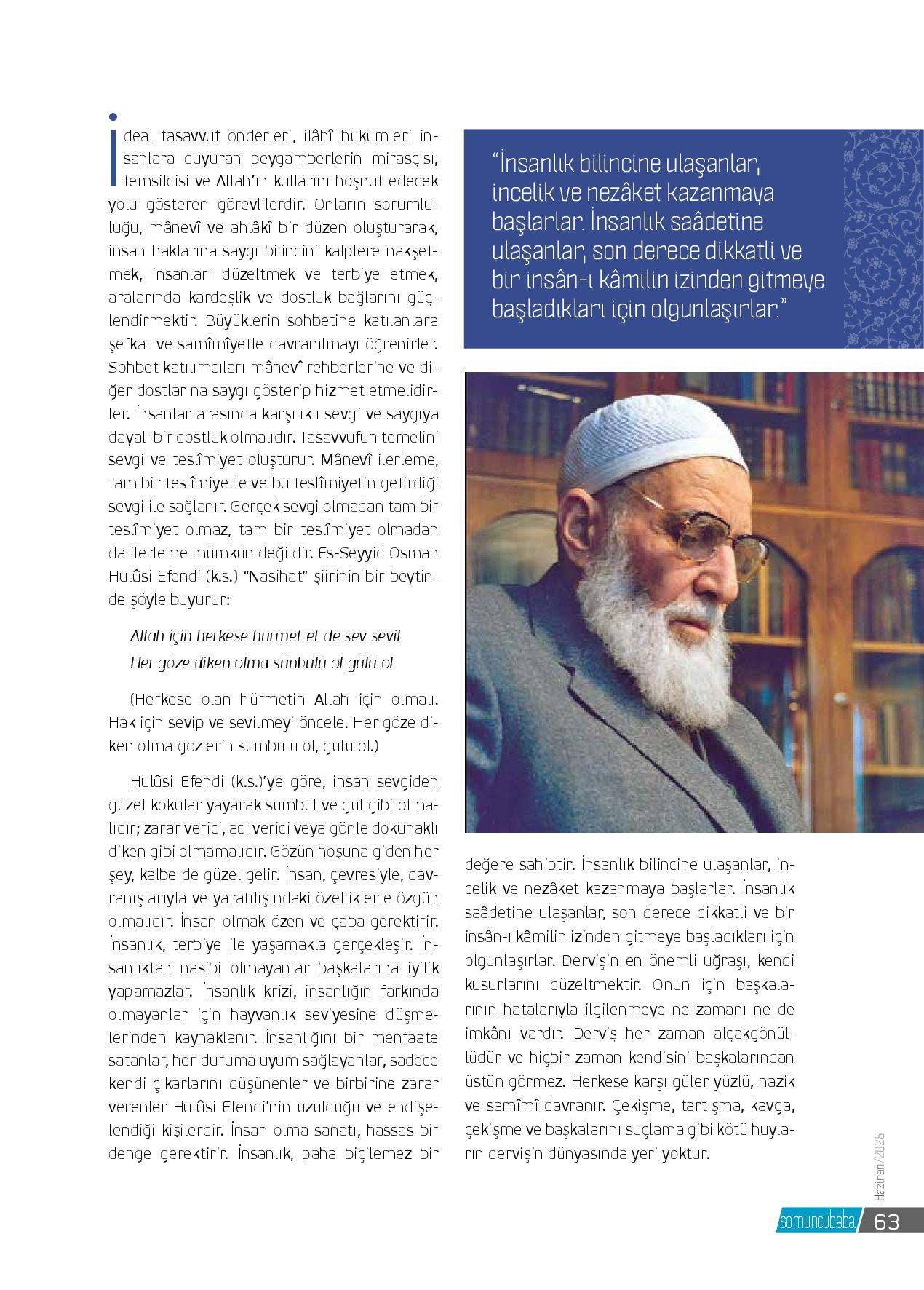 İdeal tasavvuf önderleri, ilâhî hükümleri insanlara duyuran peygamberlerin mirasçısı, temsilcisi ve Allah’ın kullarını hoşnut edecek yolu gösteren görevlilerdir. Onların sorumluluğu, mânevî ve ahlâkî bir düzen oluşturarak, insan haklarına saygı bilincini kalp...