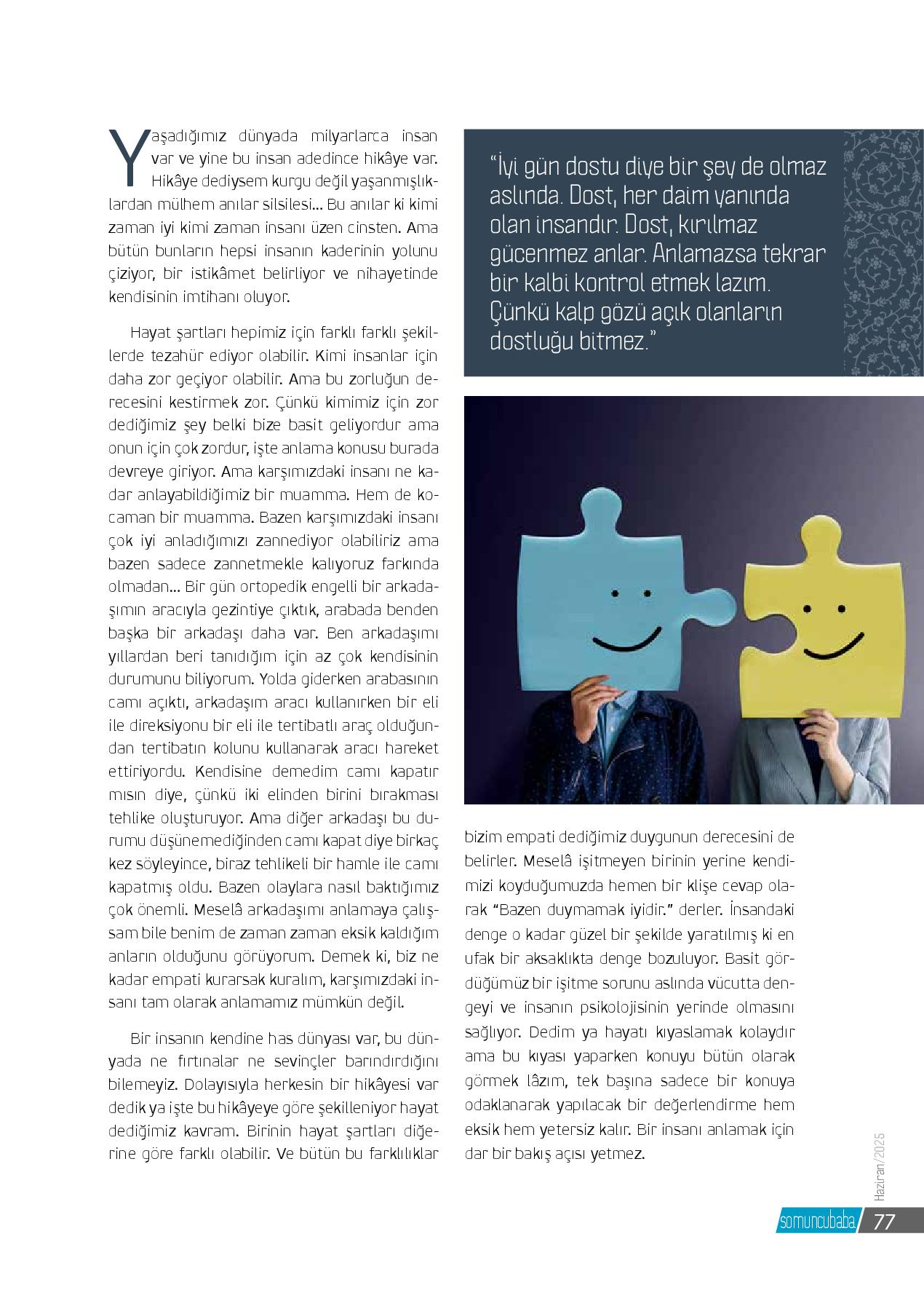 Yaşadığımız dünyada milyarlarca insan var ve yine bu insan adedince hikâye var. Hikâye dediysem kurgu değil yaşanmışlıklardan mülhem anılar silsilesi… Bu anılar ki kimi zaman iyi kimi zaman insanı üzen cinsten. Ama bütün bunların hepsi insanın kaderinin yolu...