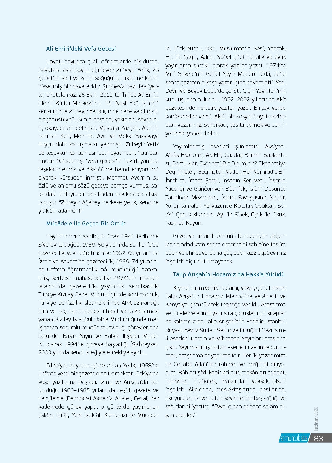 Her zaman “Fânî dünya!” deriz. Ama bu hakîkati bir yakınımızı, akrabamızı, komşumuzu, üstümüzde hakkı bulunan bir ilim, fikir sanat ve edebiyat insanını âhiret yurduna yolcu ettiğimizde daha da içten hissederiz. Art arda iki yazarımızın, iki dü...