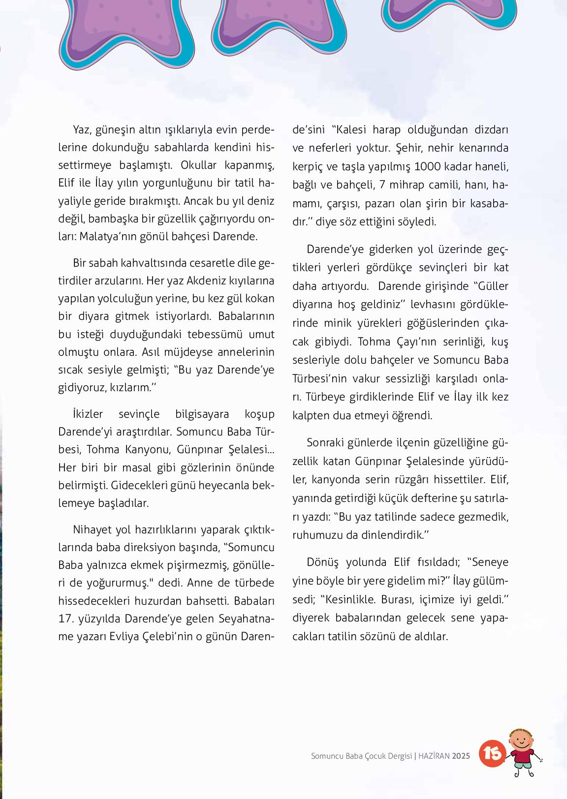 Yaz, güneşin altın ışıklarıyla evin perdelerine dokunduğu sabahlarda kendini hissettirmeye başlamıştı. Okullar kapanmış, Elif ile İlay yılın yorgunluğunu bir tatil hayaliyle geride bırakmıştı. Ancak bu yıl deniz değil, bambaşka bir güzellik çağırıyordu onları: Malatya’nın gönül bahçe...