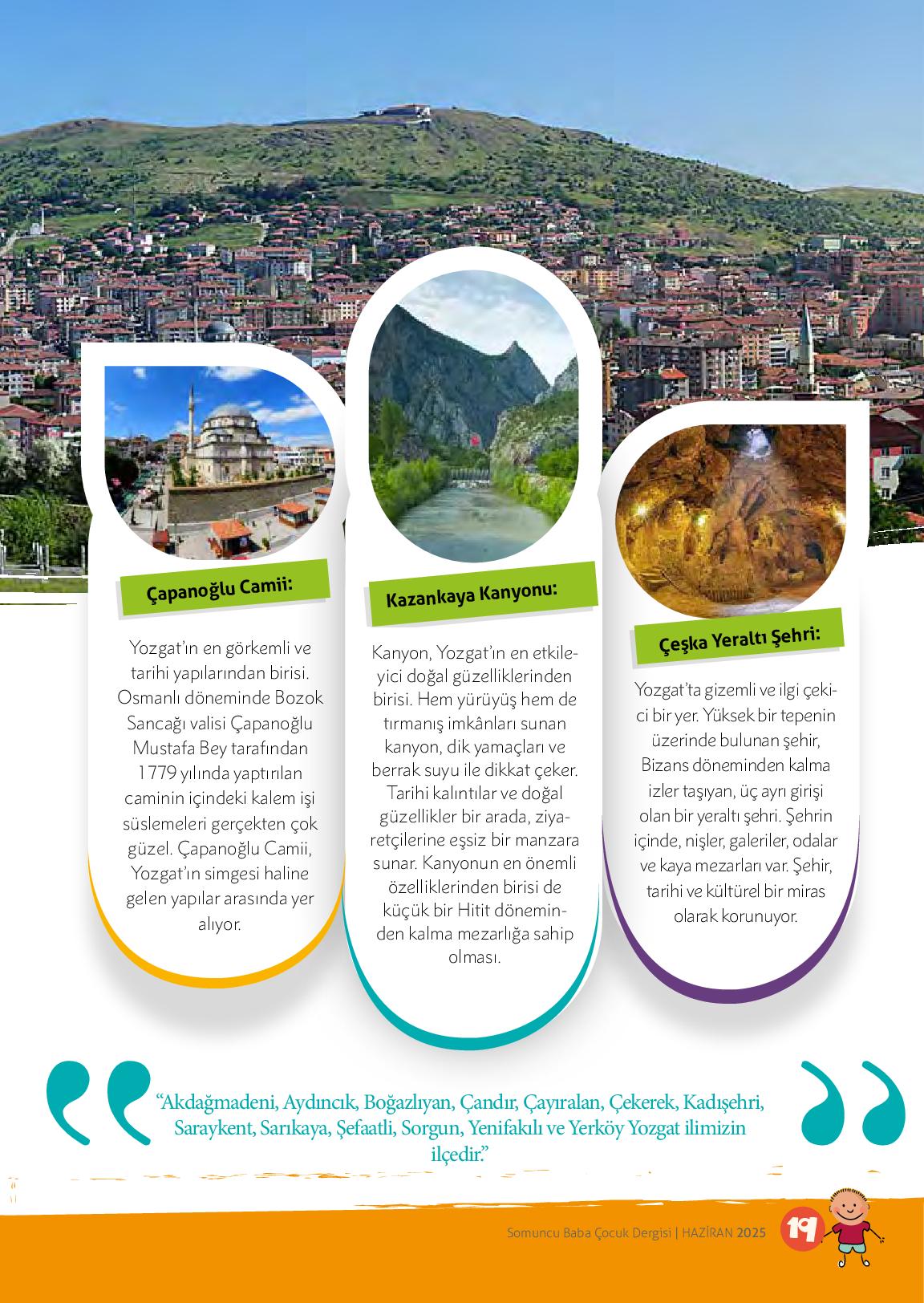 Yozgat şehri, Bozok yaylasının yüksek tepelerinden birinin eteğine kurulmuş tabiat güzellikleri bakımından eşsiz bir yerdir. Yozgat, zengin tarihi dokusu, doğal güzellikleri ve misafirperver insanları ile ziyaretçilerine güzel anlar yaşatıyor.Akdağmadeni, Aydıncık, Boğazl...