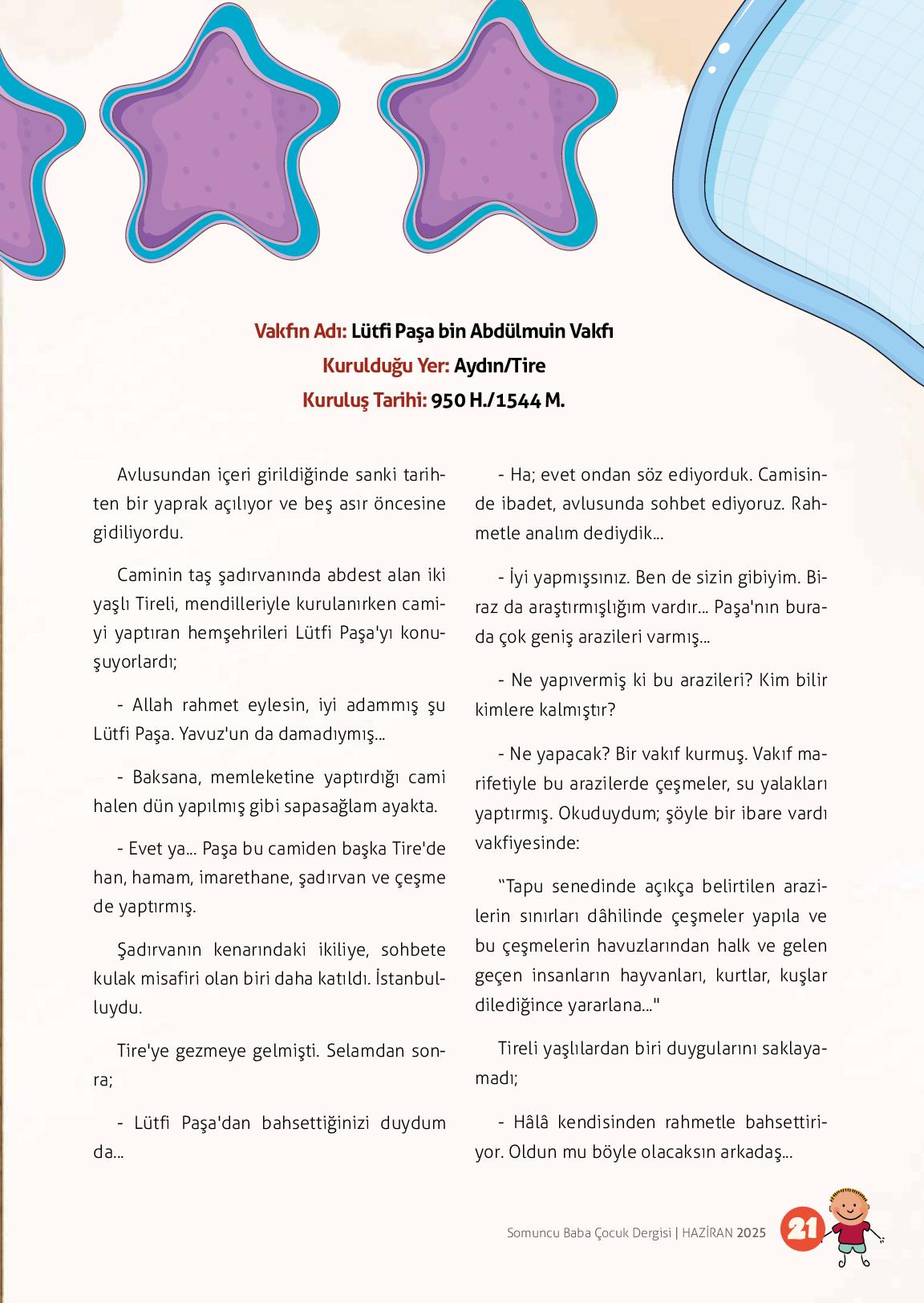 Vakfın Adı: Lütfi Paşa bin Abdülmuin VakfıKurulduğu Yer: Aydın/TireKuruluş Tarihi: 950 H./1544 M.Avlusundan içeri girildiğinde sanki tarihten bir yaprak açılıyor ve beş asır öncesine gidiliyordu.Caminin taş şadırvanında abdest alan iki yaşlı Tireli, men...