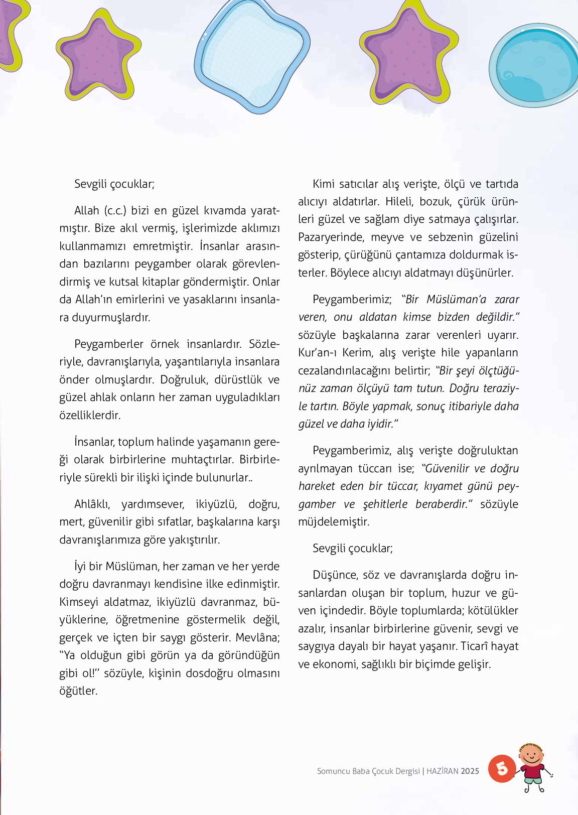 Sevgili çocuklar,Allah (c.c.) bizi en güzel kıvamda yaratmıştır. Bize akıl vermiş, işlerimizde aklımızı kullanmamızı emretmiştir. İnsanlar arasından bazılarını peygamber olarak görevlendirmiş ve kutsal kitaplar göndermiştir. Onlar da Allah’ın emirlerini ve yasaklarını insan...