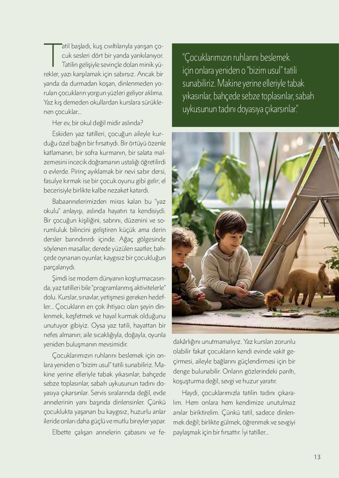 Tatil başladı, kuş cıvıltılarıyla yarışan çocuk sesleri dört bir yanda yankılanıyor. Tatilin gelişiyle sevinçle dolan minik yürekler, yazı karşılamak için sabırsız. Ancak bir yanda da durmadan koşan, dinlenmeden yorulan çocukların yorgun yüzleri geliyor aklıma. Yaz kış demeden okul...