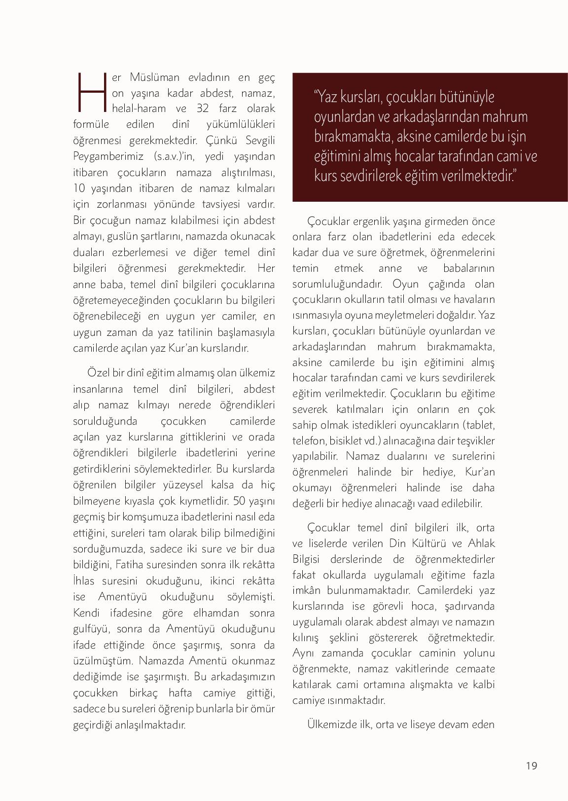 Her Müslüman evladının en geç on yaşına kadar abdest, namaz, helal-haram ve 32 farz olarak formüle edilen dinî yükümlülükleri öğrenmesi gerekmektedir. Çünkü Sevgili Peygamberimiz (s.a.v.)’in, yedi yaşından itibaren çocukların namaza alıştırılması, 10 yaş...