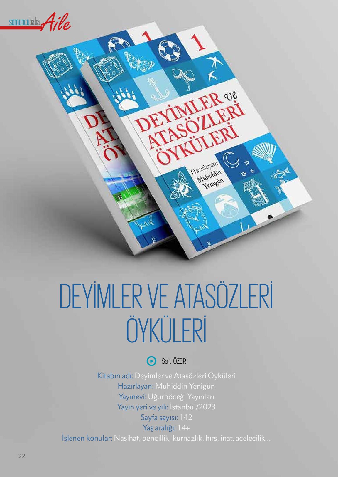Kitabın adı: Deyimler ve Atasözleri ÖyküleriHazırlayan: Muhiddin YenigünYayınevi: Uğurböceği YayınlarıYayın yeri ve yılı: İstanbul/2023Sayfa sayısı: 142Yaş aralığı: 14+İşlenen konular: Nasihat, bencillik, kurnazlık, hırs, inat, acelecilik…Az sözle çok şey anlatm...