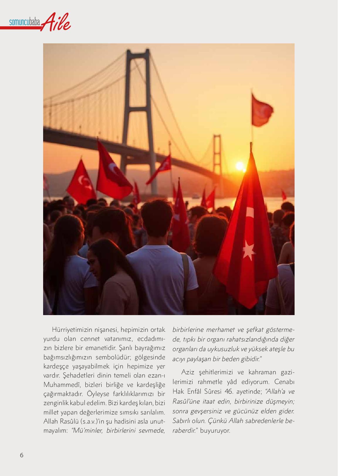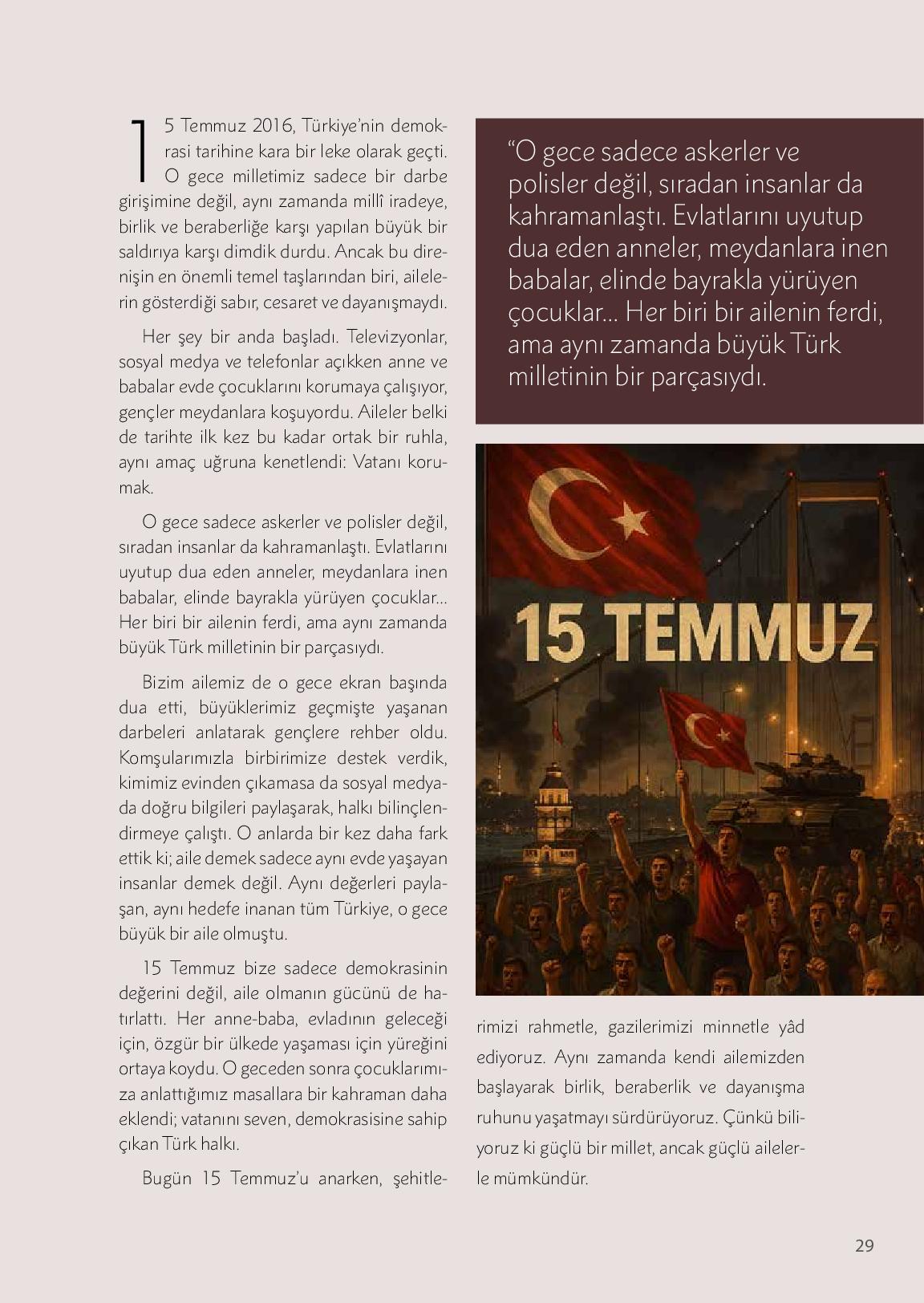 15 Temmuz: Ailemizle Dayanışmanın ve Vatan Sevgisinin Günü