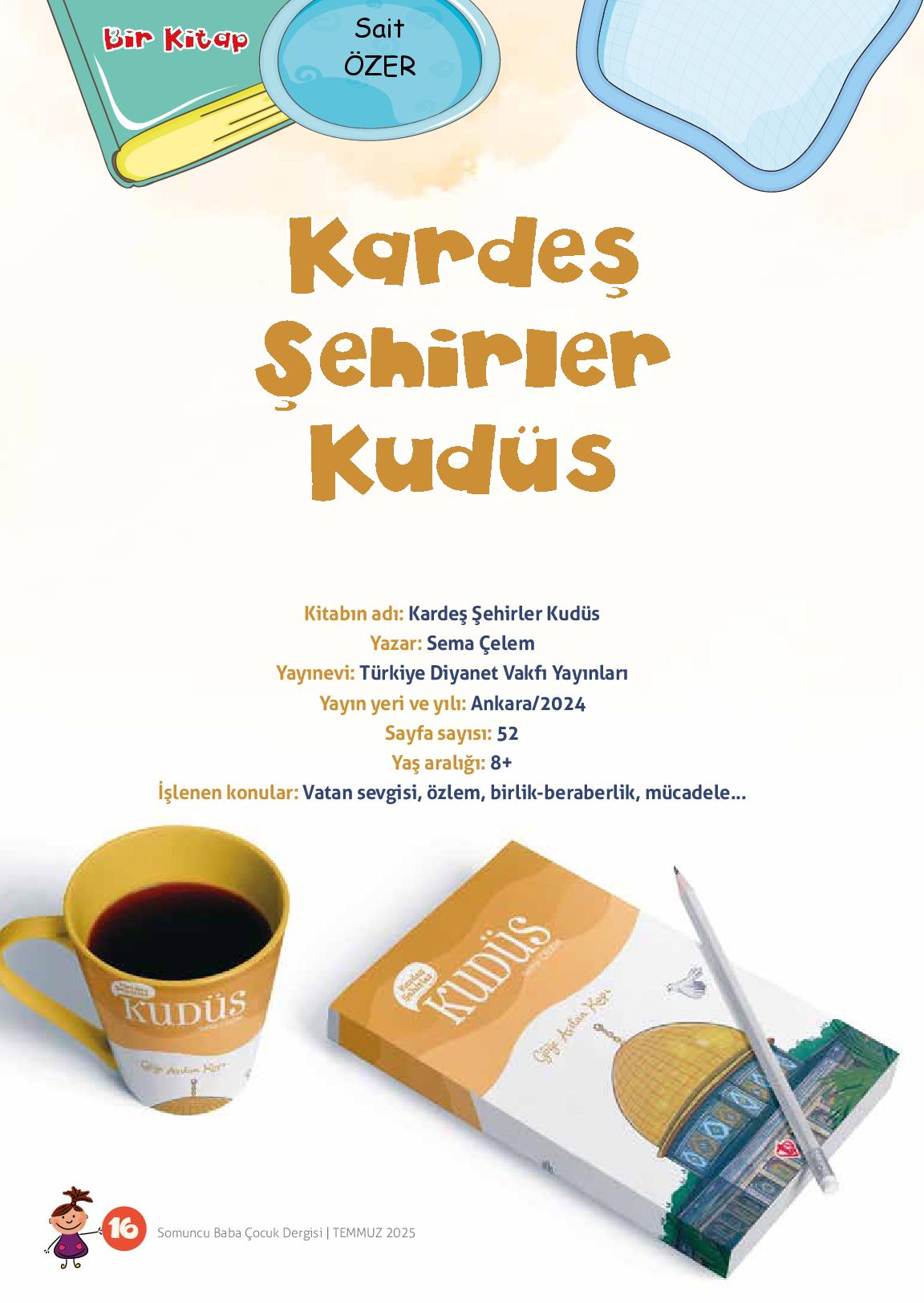 Kitabın adı: Kardeş Şehirler KudüsYazar: Sema ÇelemYayınevi: Türkiye Diyanet Vakfı YayınlarıYayın yeri ve yılı: Ankara/2024Sayfa sayısı: 52Yaş aralığı: 8+İşlenen konular: vatan sevgisi, özlem, birlık-beraberlik, mücadele…İnsanın dedelerinden miras kalan yüzyıllarca ya...