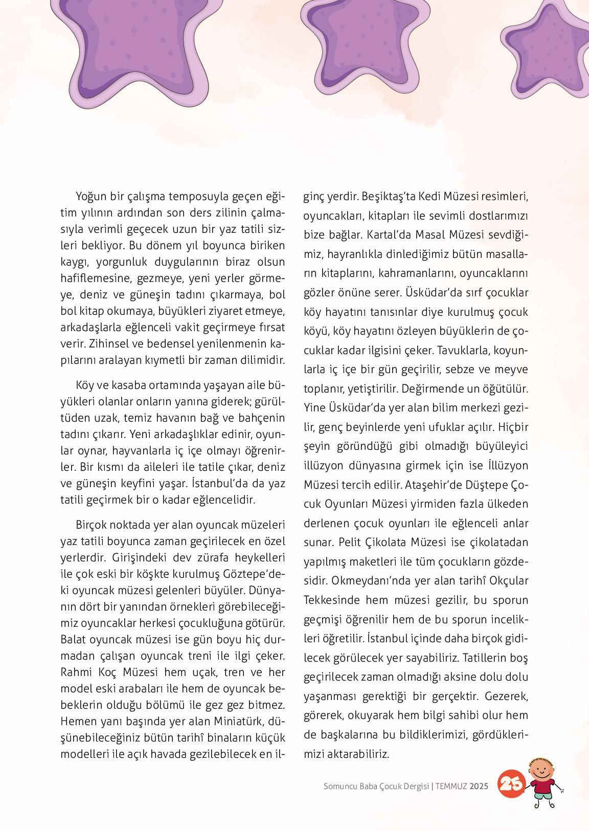 Yoğun bir çalışma temposuyla geçen eğitim yılının ardından son ders zilinin çalmasıyla verimli geçecek uzun bir yaz tatili sizleri bekliyor. Bu dönem yıl boyunca biriken kaygı, yorgunluk duygularının biraz olsun hafiflemesine, gezmeye, yeni yerler görmeye, deniz ve güneşin tadını çı...