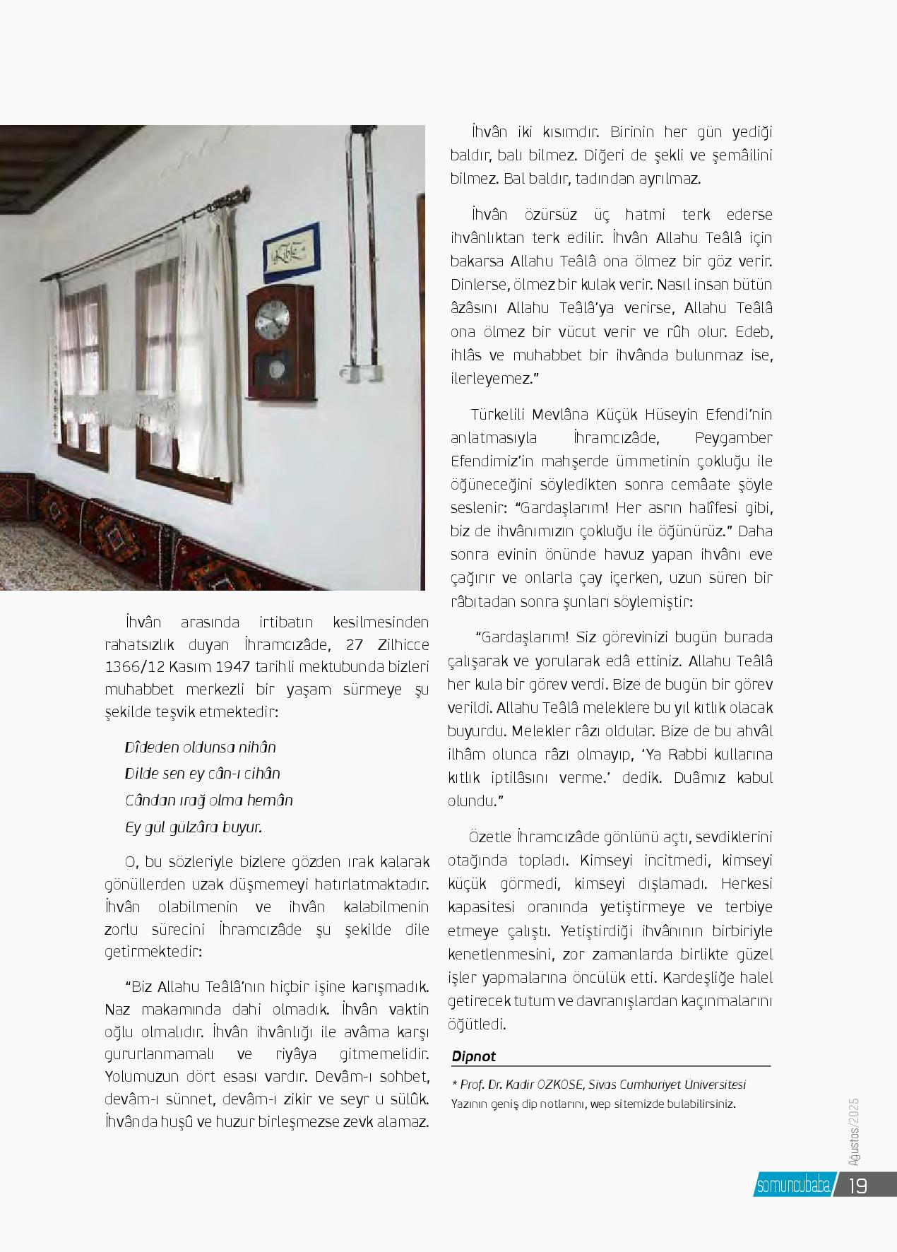 İhramcızâde’nin Dergâhında Kardeşliğin Temel Ölçütleri