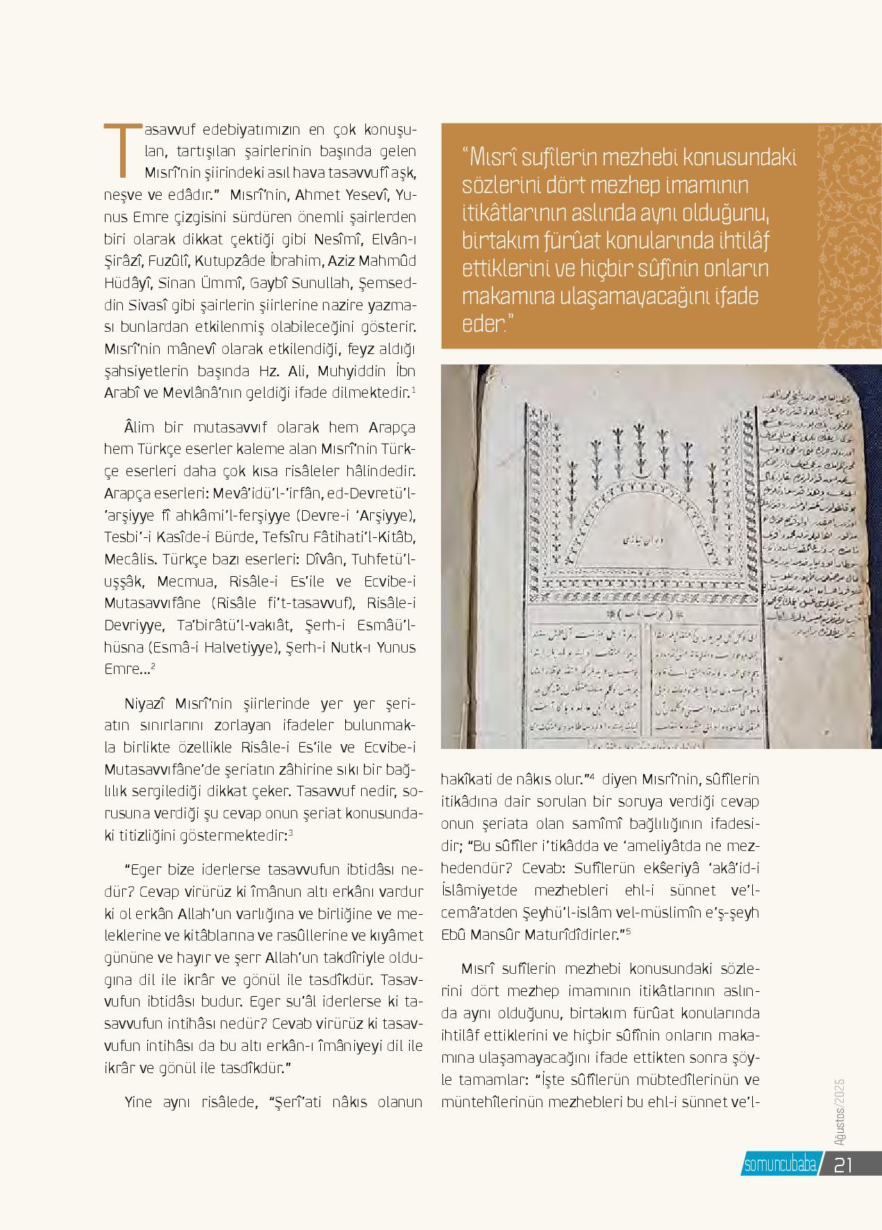 Tasavvuf edebiyatımızın en çok konuşulan, tartışılan şairlerinin başında gelen Mısrî’nin şiirindeki asıl hava tasavvufî aşk, neşve ve edâdır.” Mısrî’nin, Ahmet Yesevî, Yunus Emre çizgisini sürdüren önemli şairlerden biri olarak dikkat çektiği gibi ...