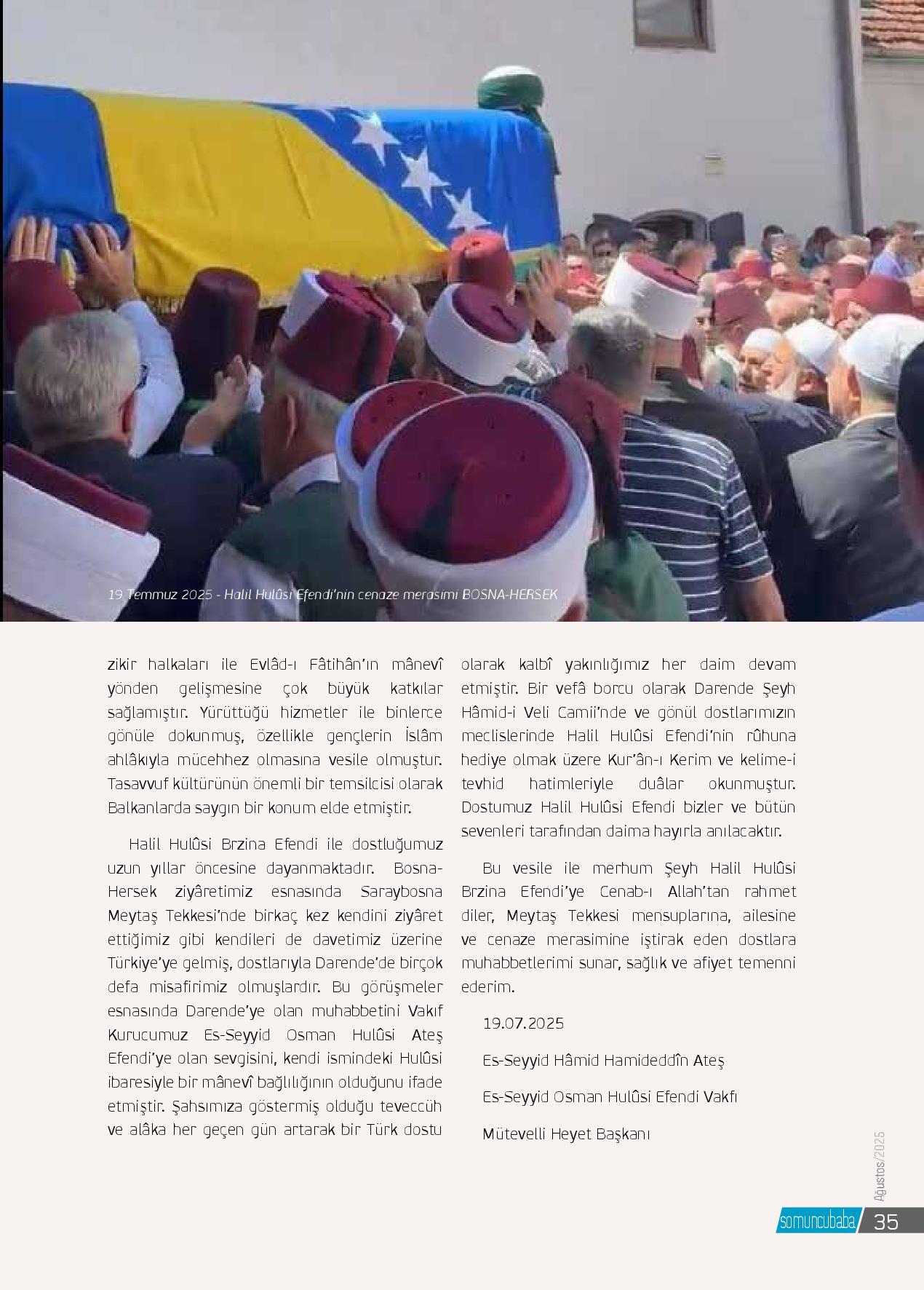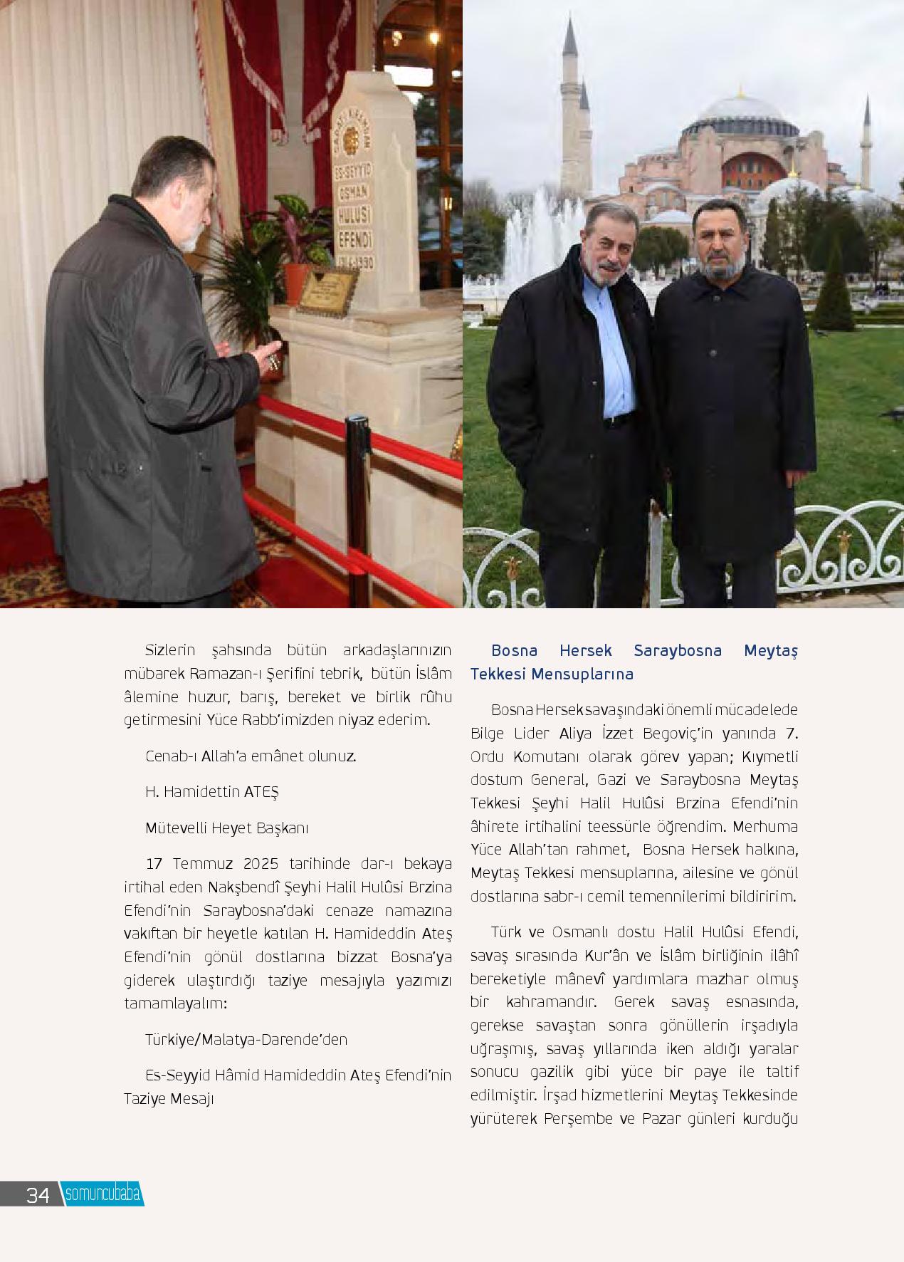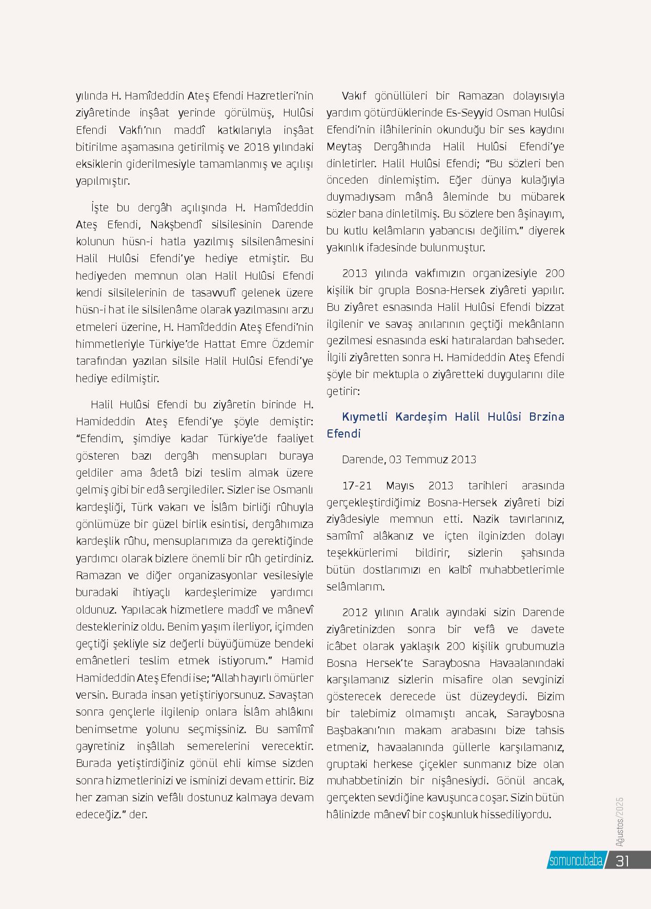 Vefâ Bir İman Şûbesidir: H. Hamideddin Ateş Efendi’nin Vefâlı Bosna Ziyâreti “Vefâ, insana yakışan bir asâlet, dostluğun ve sadâkatin en güzel nişânesidir.” Vefâ, gönül bahçelerinde yetişen bir güldür. Vefâlı insanlar duygu, düşünce ve tasavvurda aynı şeyleri gül güzelliğiy...