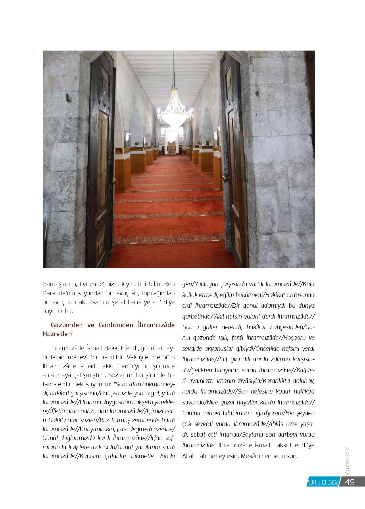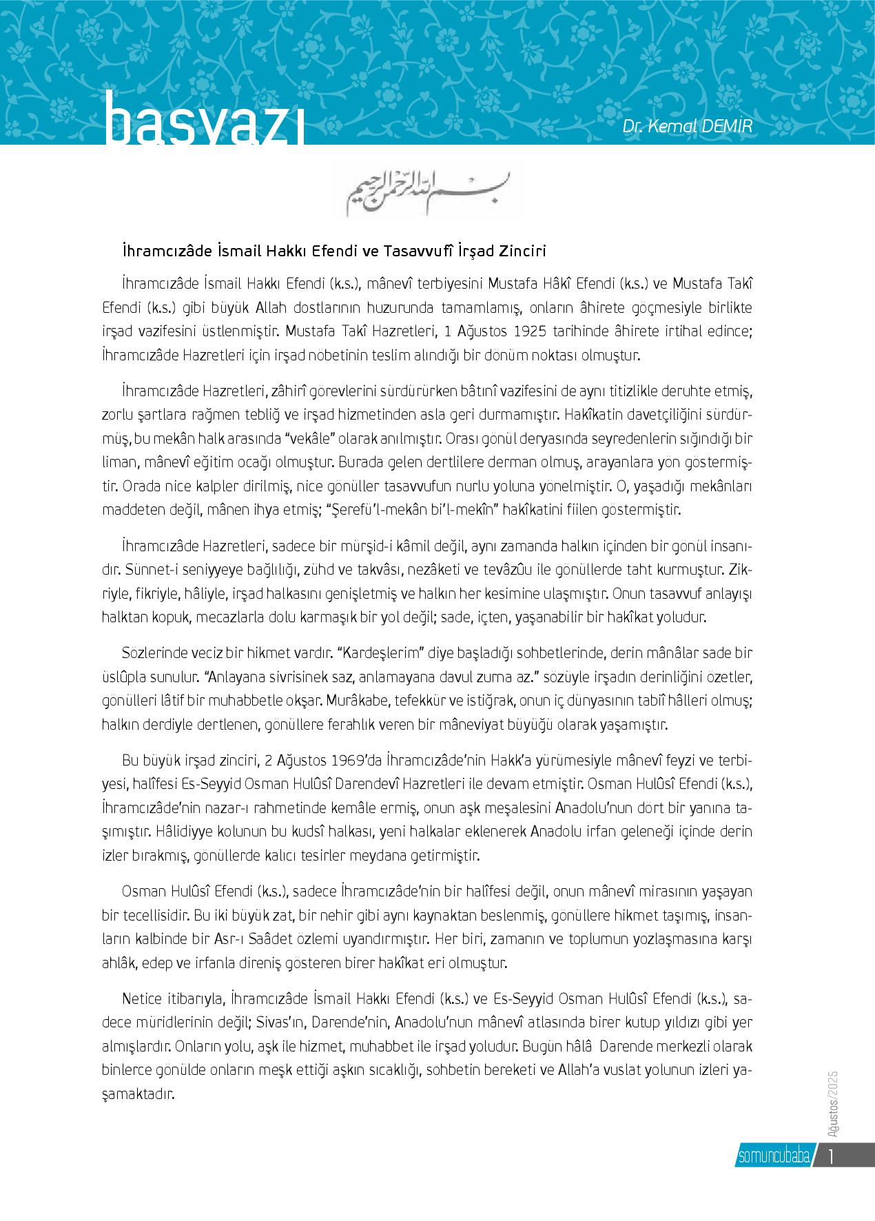 İhramcızâde İsmail Hakkı Efendi (k.s.), mânevî terbiyesini Mustafa Hâkî Efendi (k.s.) ve Mustafa Takî Efendi (k.s.) gibi büyük Allah dostlarının huzurunda tamamlamış, onların âhirete göçmesiyle birlikte irşad vazifesini üstlenmiştir. Mustafa ...
