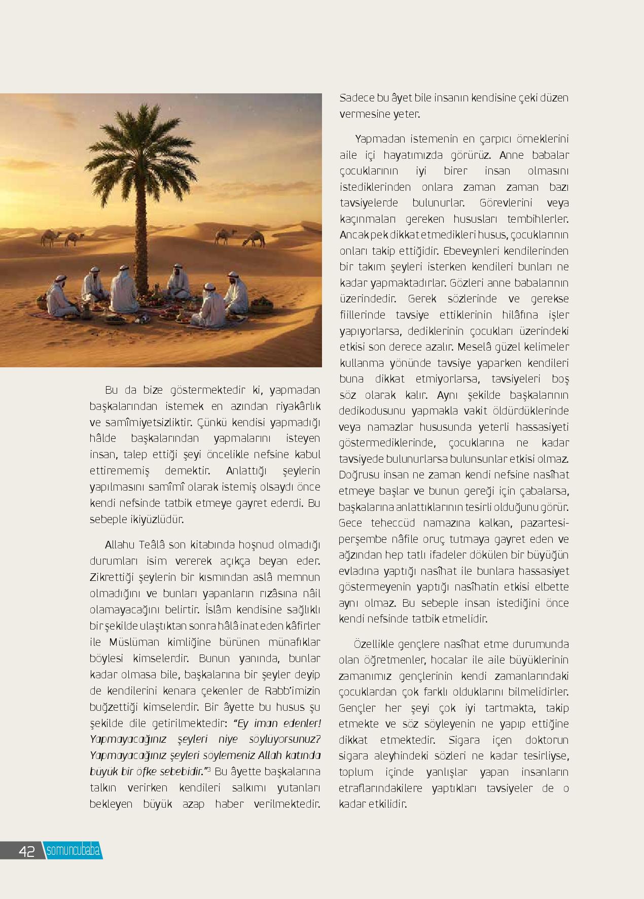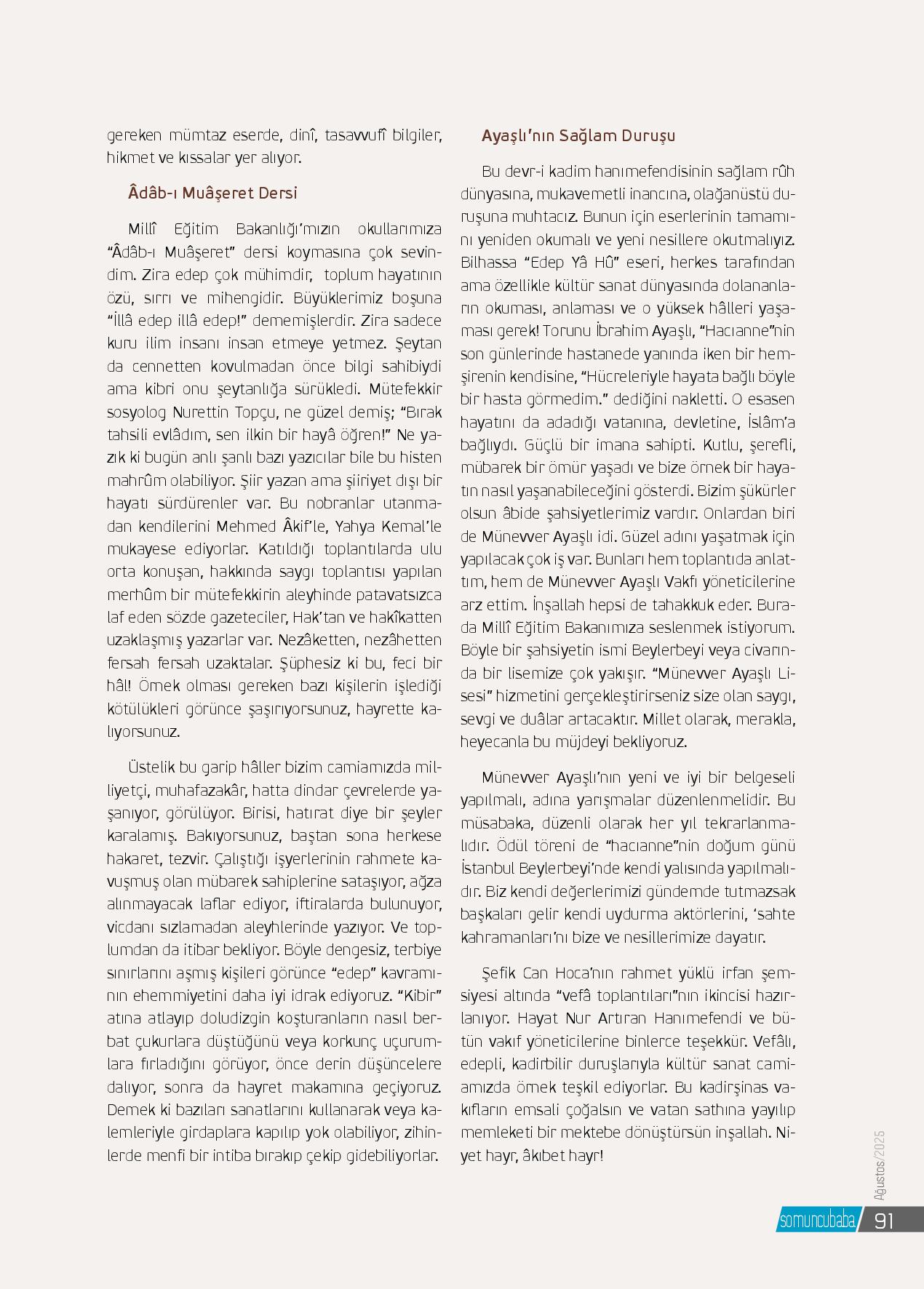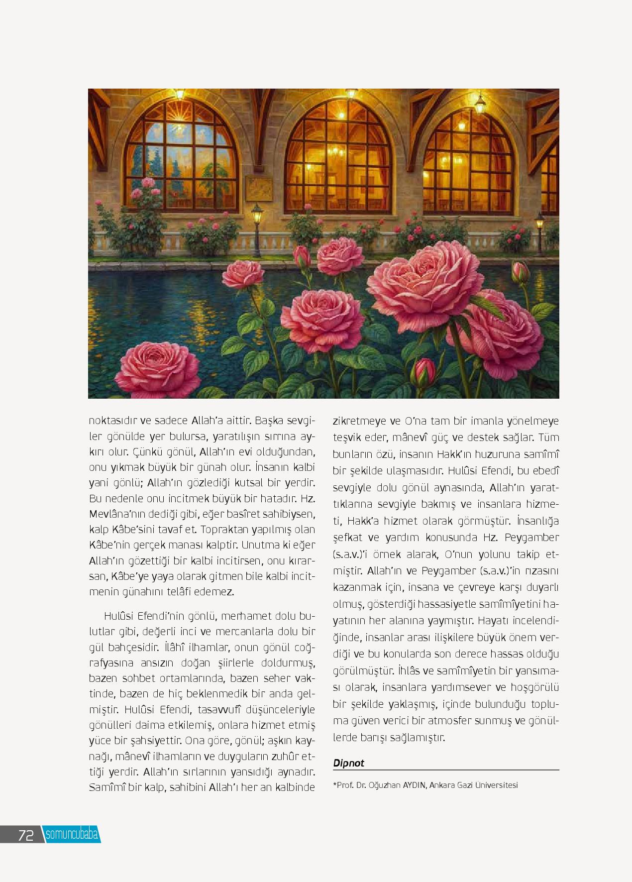 Bizim yüce bir dinimiz, muhteşem bir medeniyetimiz ve olağanüstü bir tasavvuf kültürümüz vardır. Biz millet olarak bu büyük güneşin gölgesinde serinliyor, sıcaklığında ısınıyoruz. Dara düştüğümüzde dönüp mâziye bakmamız ve kıssalardan hisse almamız kâfi. Zira şa...