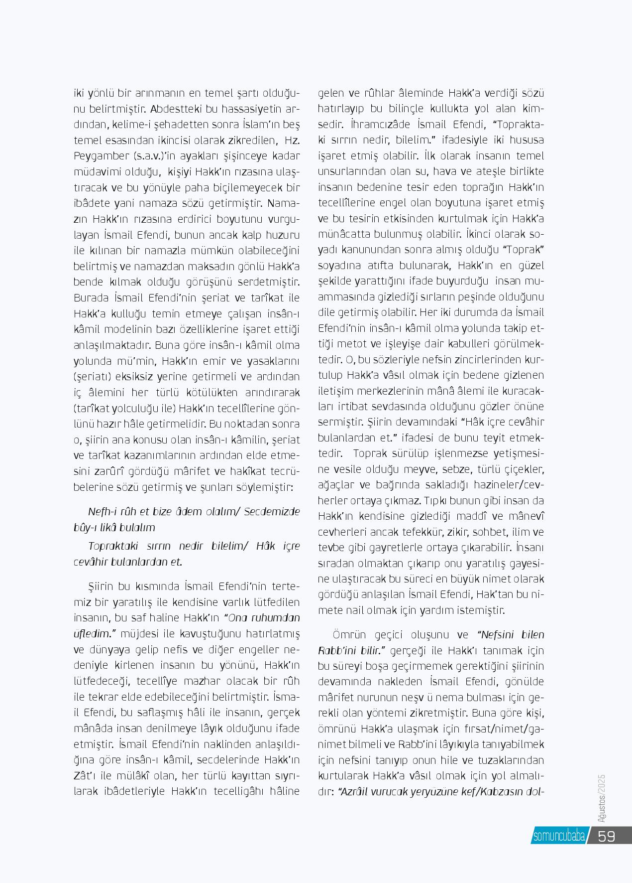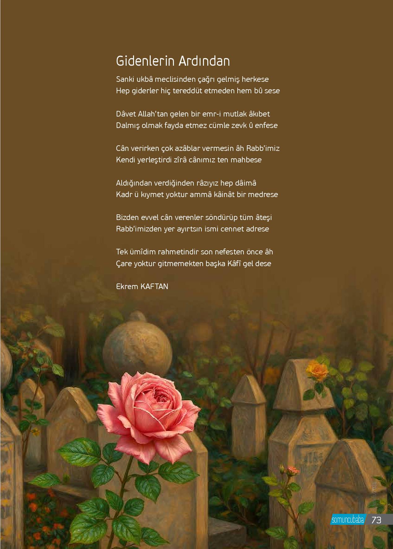 Sanki ukbâ meclisinden çağrı gelmiş herkeseHep giderler hiç tereddüt etmeden hem bû seseDâvet Allah’tan gelen bir emr-i mutlak âkıbetDalmış olmak fayda etmez cümle zevk û enfeseCân verirken çok azâblar vermesin âh Rabb’imizKendi yerleştirdi zîrâ cânımız ten mahbeseAldığından verdi...