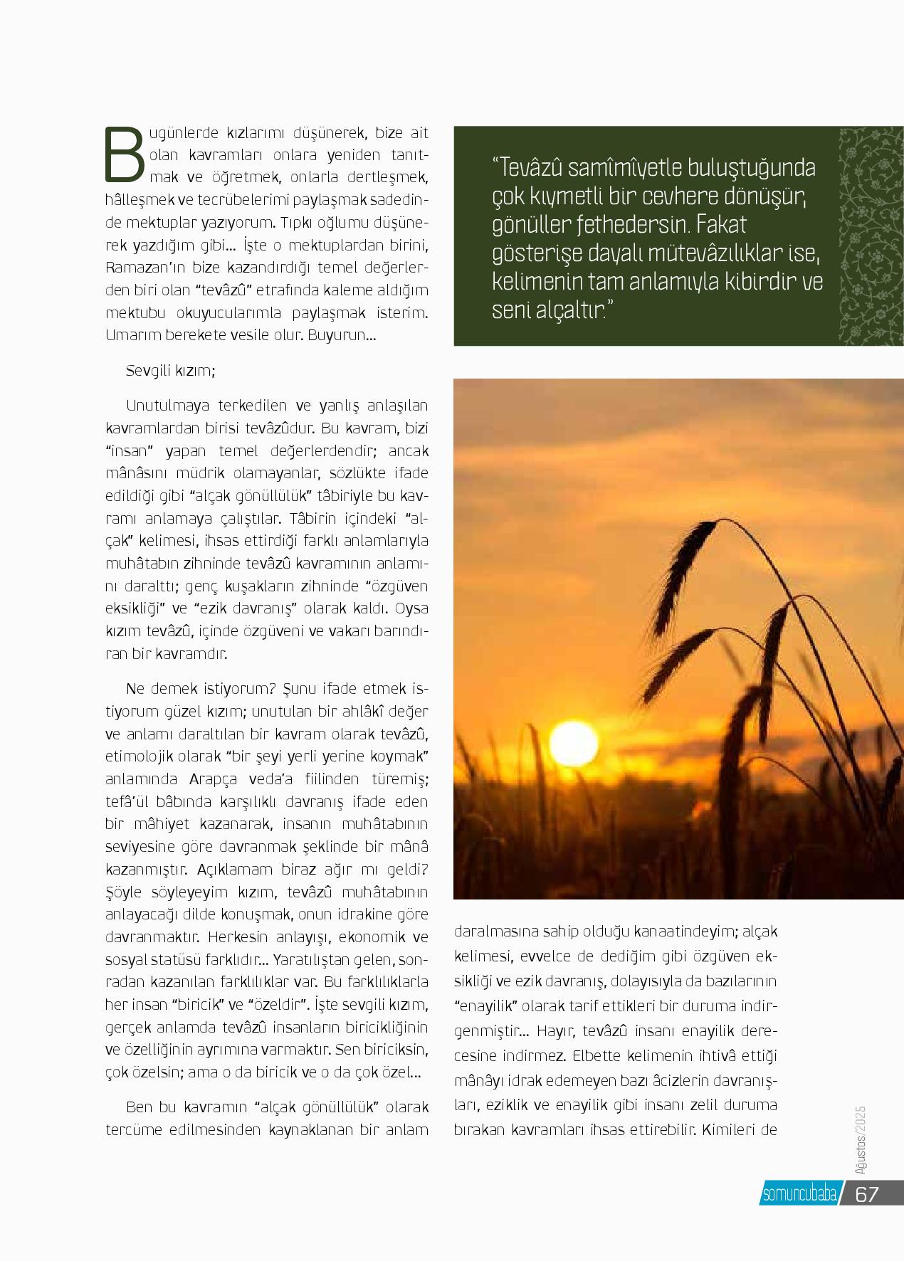 Bugünlerde kızlarımı düşünerek, bize ait olan kavramları onlara yeniden tanıtmak ve öğretmek, onlarla dertleşmek, hâlleşmek ve tecrübelerimi paylaşmak sadedinde mektuplar yazıyorum. Tıpkı oğlumu düşünerek yazdığım gibi... İşte o mektuplardan birini, Ramazan’ın bize kaz...