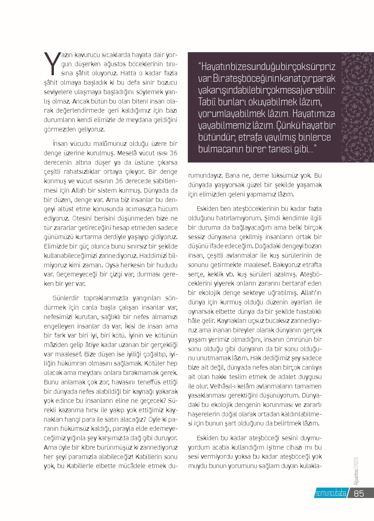 Yazın kavurucu sıcaklarda hayata dair yorgun düşerken ağustos böceklerinin tınısına şâhit oluyoruz. Hatta o kadar fazla şâhit olmaya başladık ki bu defa sinir bozucu seviyelere ulaşmaya başladığını söylemek yanlış olmaz. Ancak bütün bu olan biteni insan olarak değerlendirmede ge...