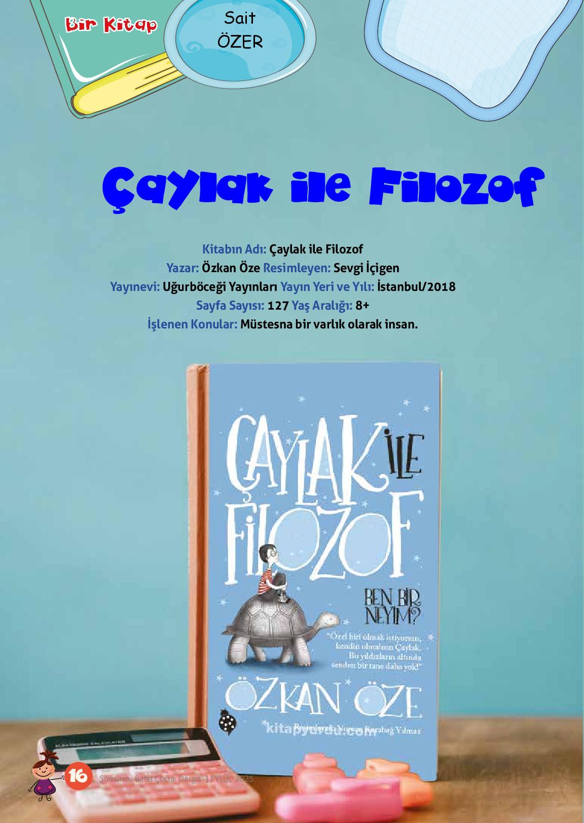 Kitabın adı: Çaylak ile FilozofYazar: Özkan ÖzeResimleyen: Sevgi İçigenYayınevi: Uğurböceği YayınlarıYayın yeri ve yılı: İstanbul/2018Sayfa sayısı: 127Yaş aralığı: 8+İşlenen konular: Müstesna bir varlık olarak insan.Evet, sevgili çocuklar bugün sizlerle paylaşmak istediğim kitap Ça...