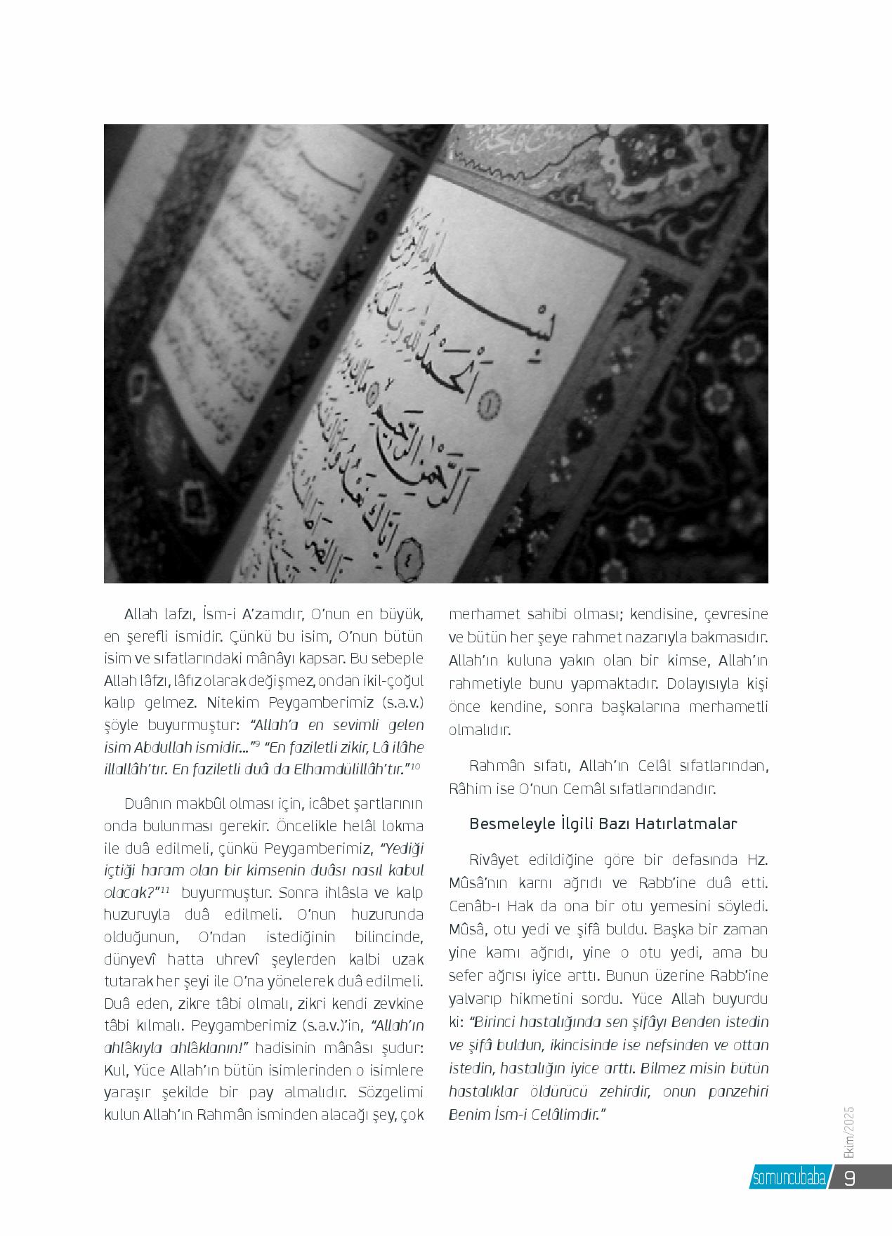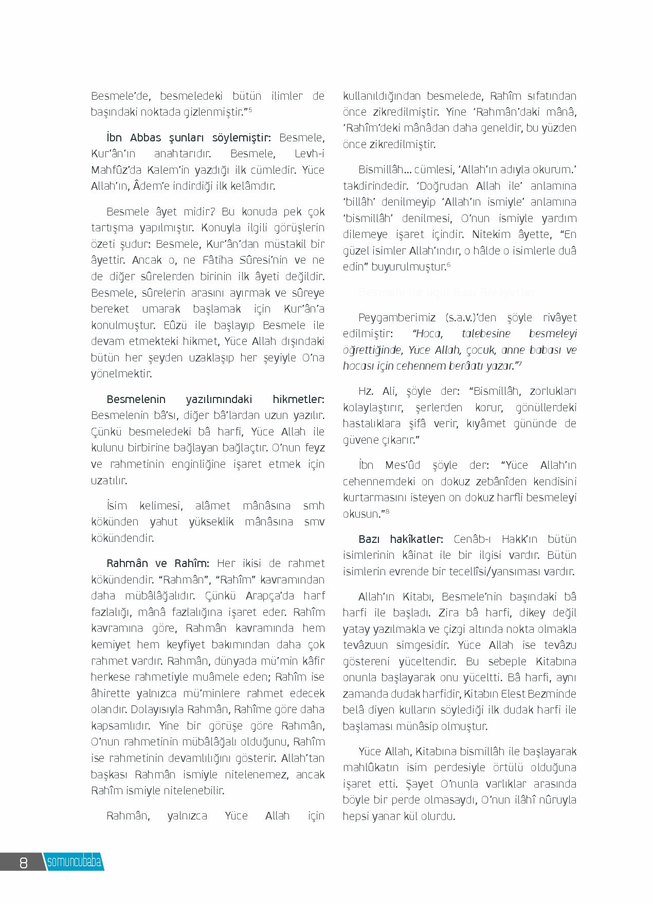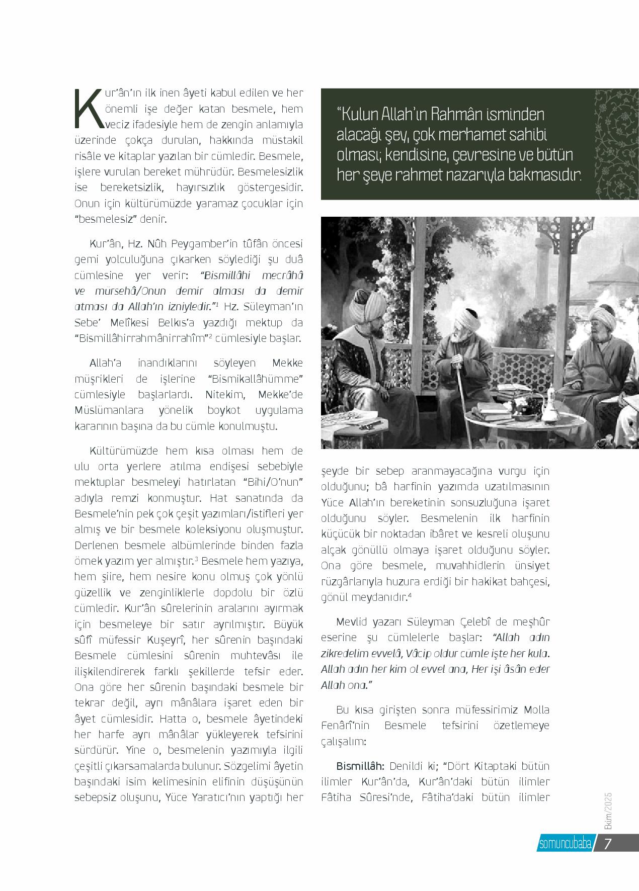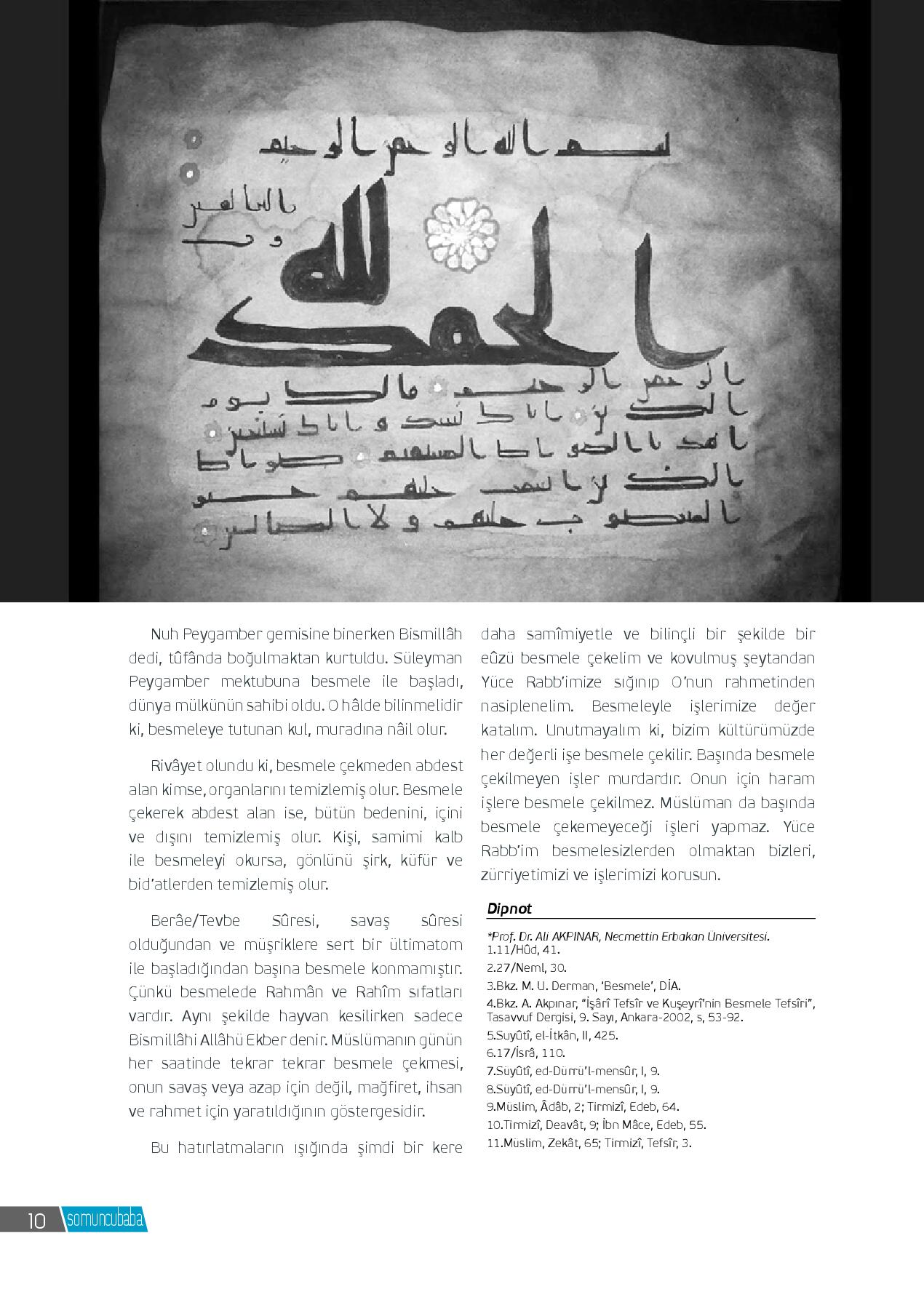 Kur’ân’ın ilk inen âyeti kabul edilen ve her önemli işe değer katan besmele, hem veciz ifadesiyle hem de zengin anlamıyla üzerinde çokça durulan hakkında müstakil risâle ve kitaplar yazılan bir cümledir. Besmele, işlere vurulan bereket mührüdür. Besmelesizlik ise bere...