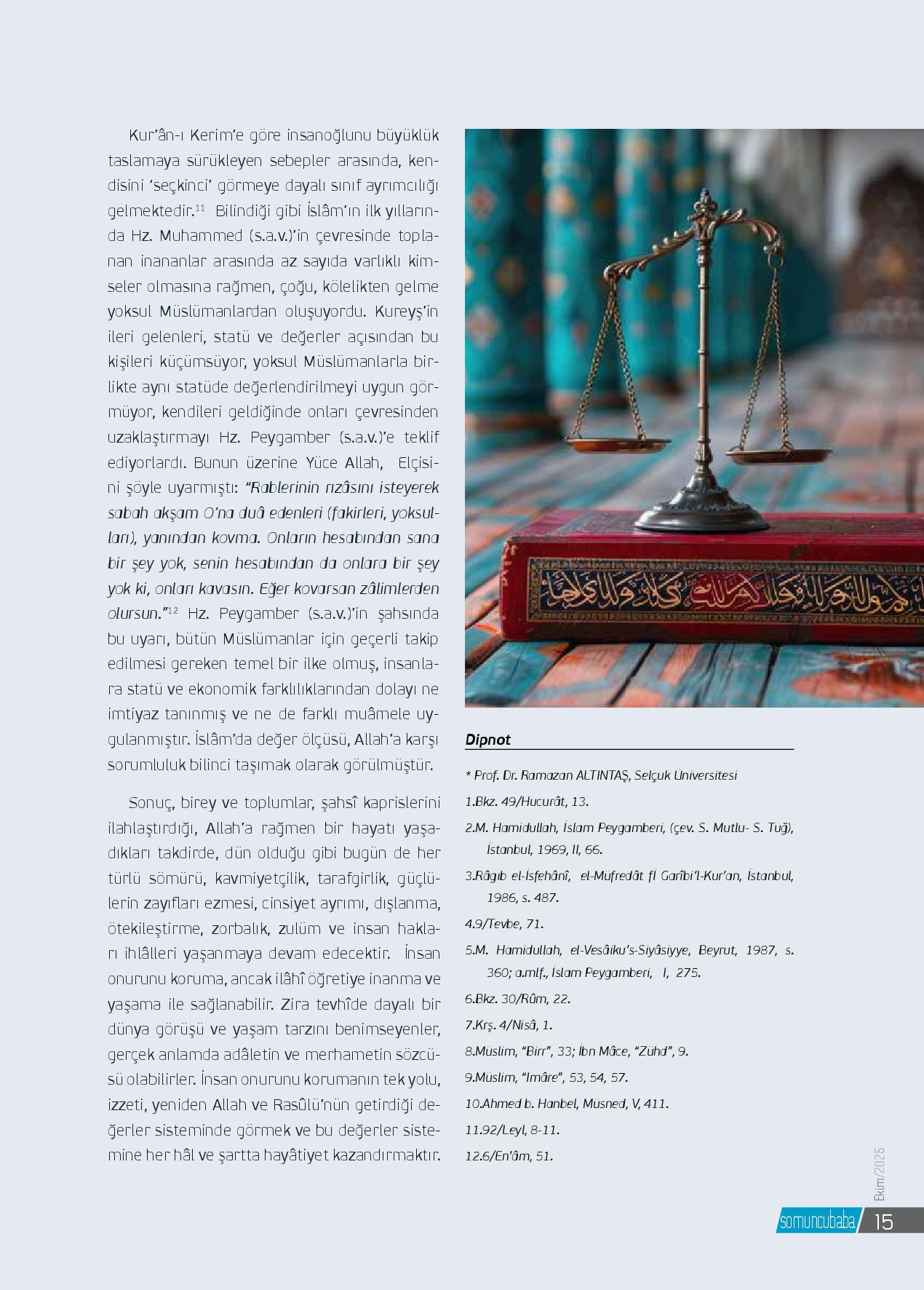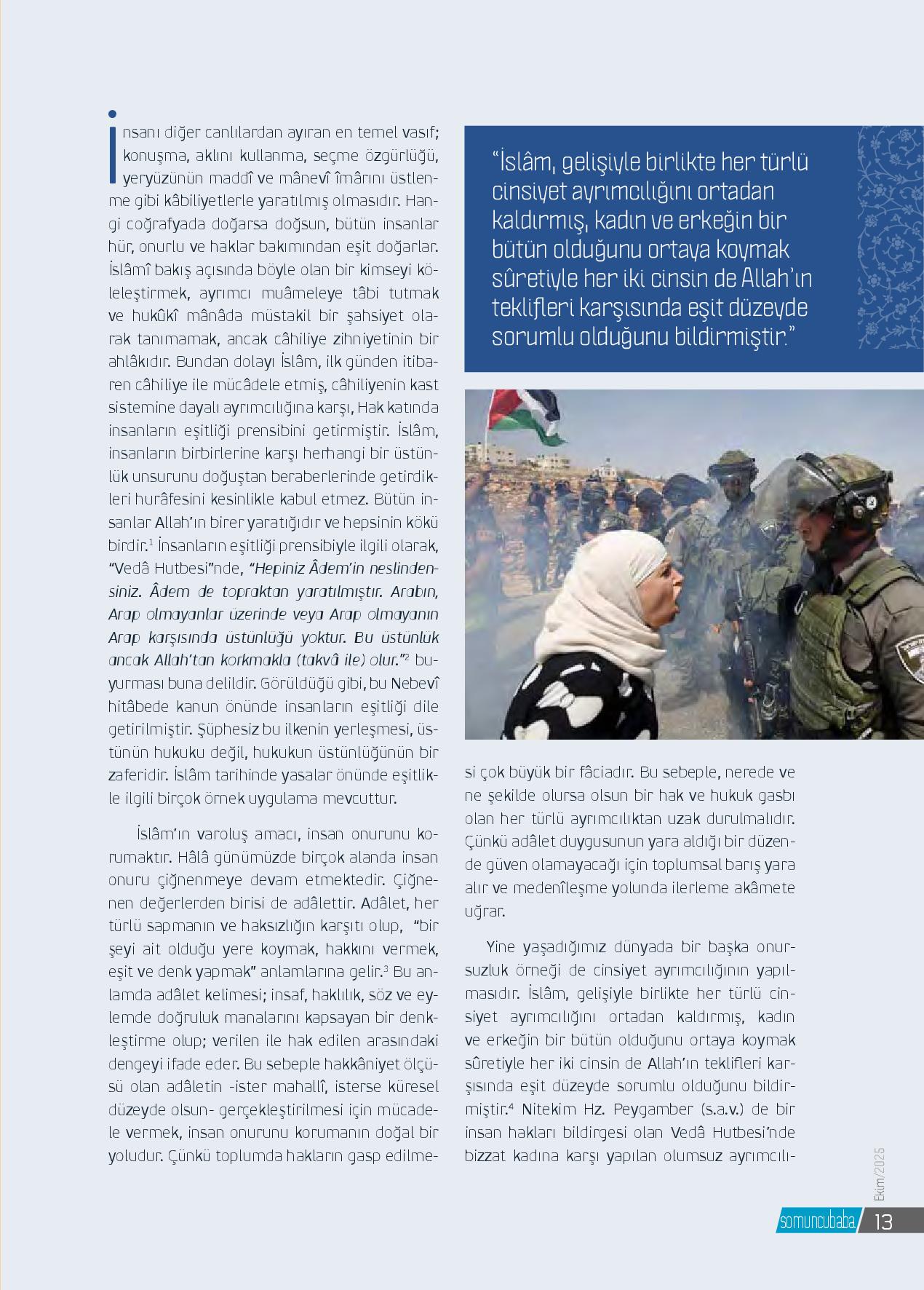 İnsanı diğer canlılardan ayıran en temel vasıf; konuşma, aklını kullanma, seçme özgürlüğü, yeryüzünün maddî ve mânevî îmârını üstlenme gibi kâbiliyetlerle yaratılmış olmasıdır. Hangi coğrafyada doğarsa doğsun, bütün insanlar hür, onurlu ve haklar bakımından e...