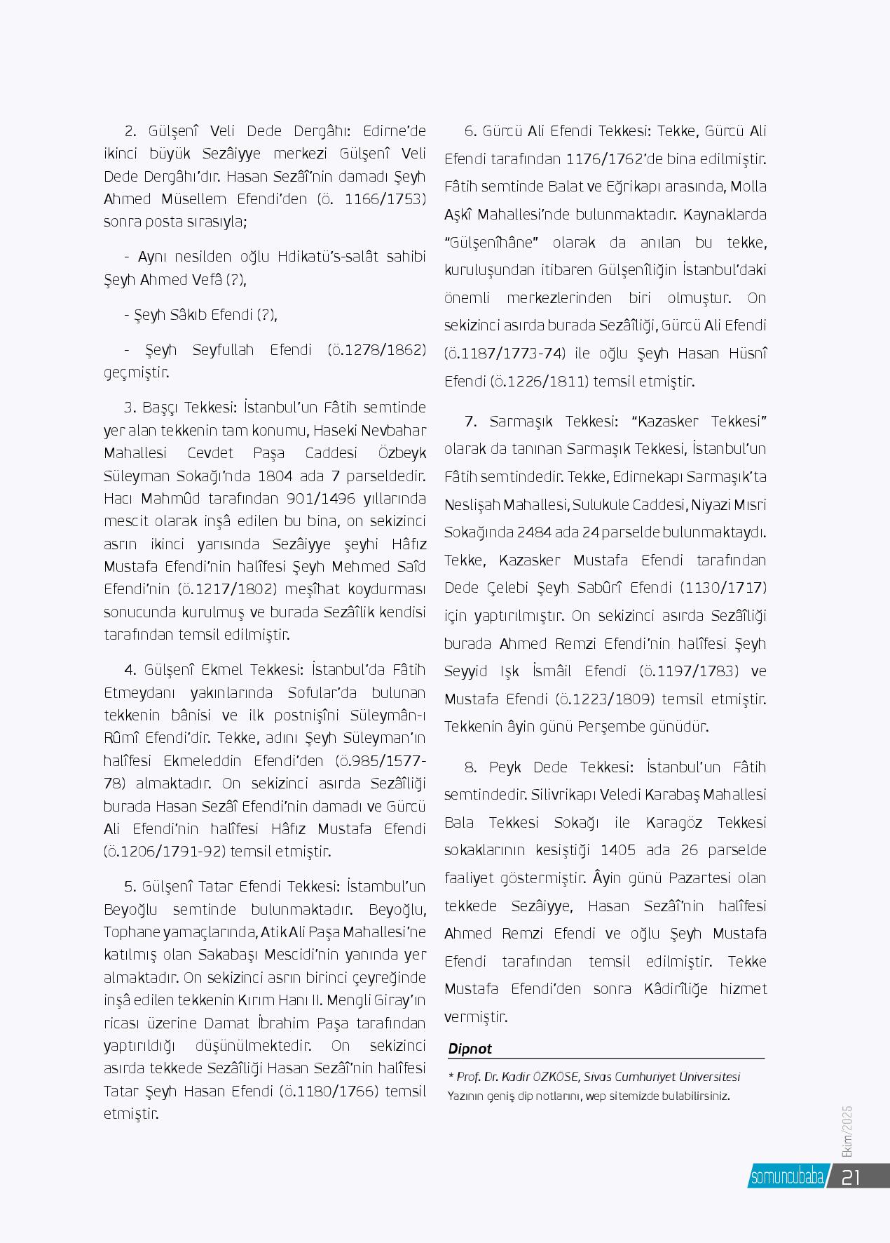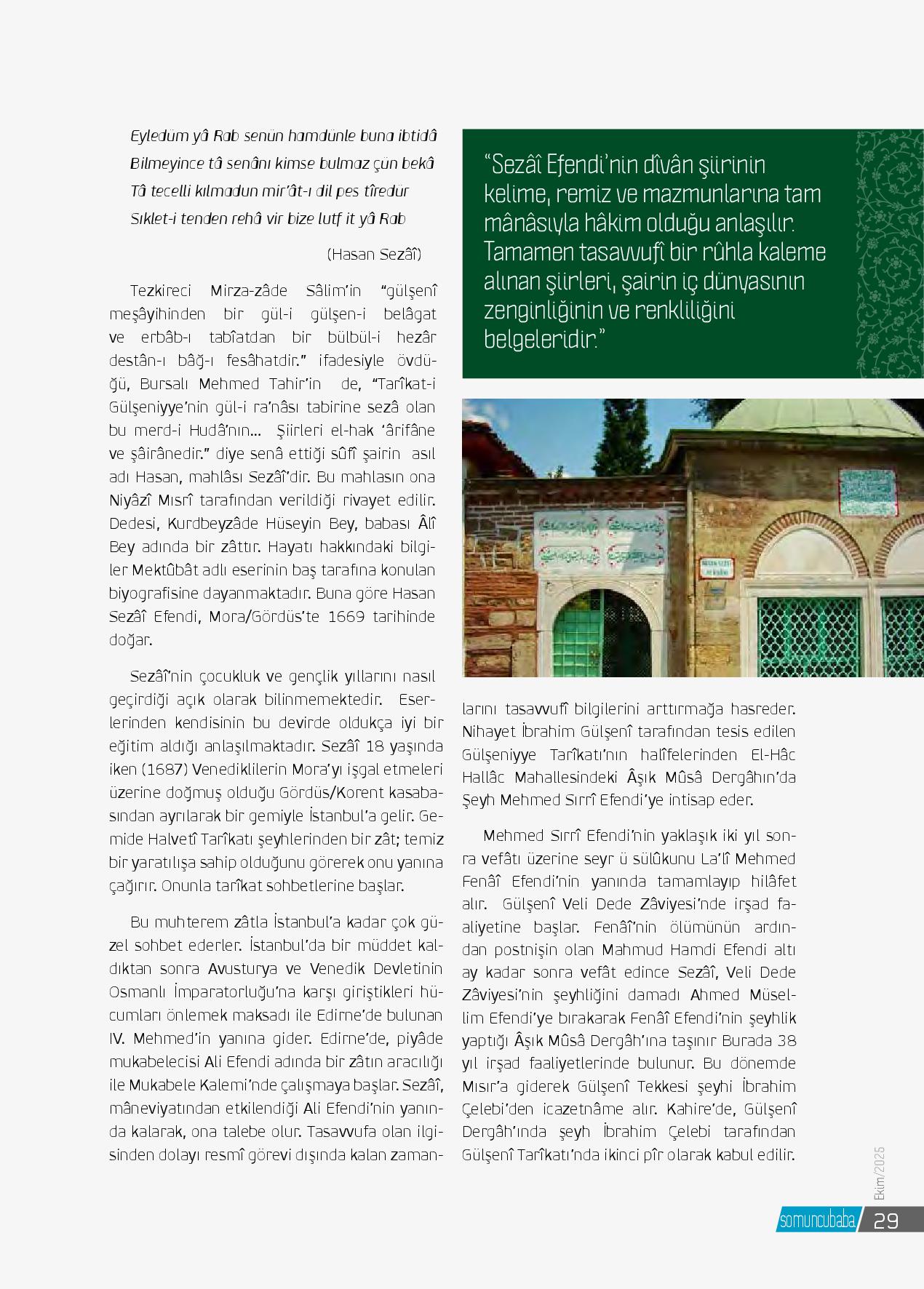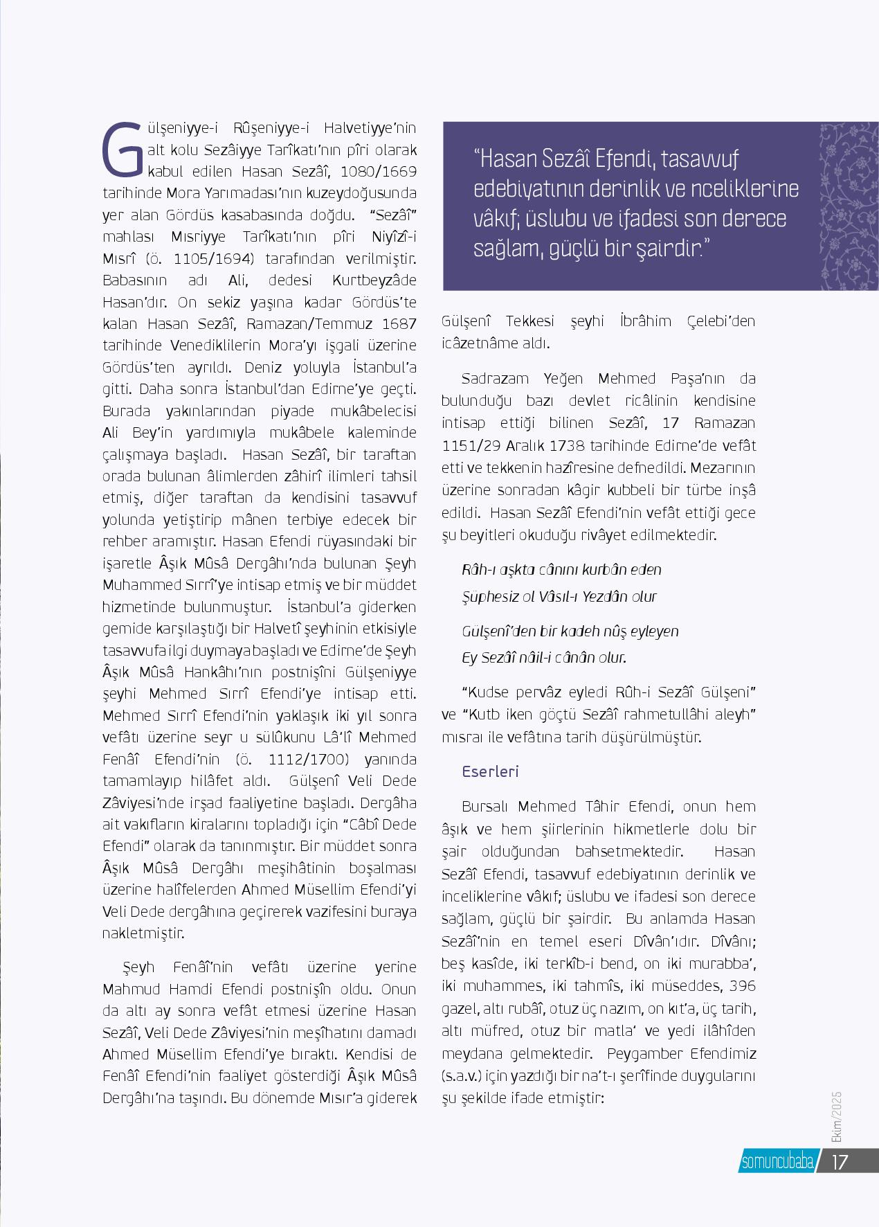 Halvetiyye’nin Gülşeniyye-Sezâiyye Kolu ve Hasan Sezâyî Hazretleri