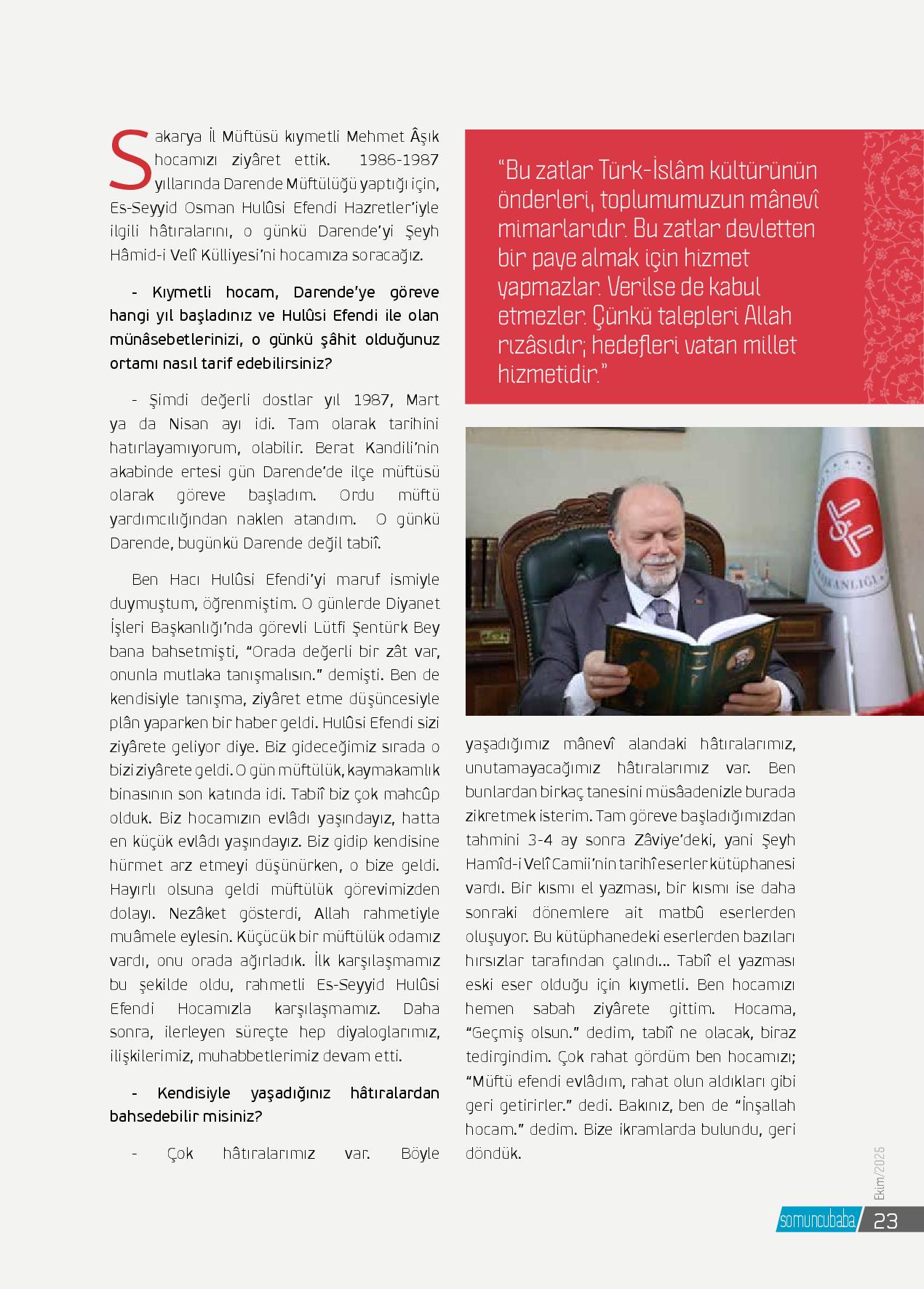 Sakarya İl Müftüsü Mehmet Âşık Hocamızla Hulûsi Efendi Konulu Röportaj