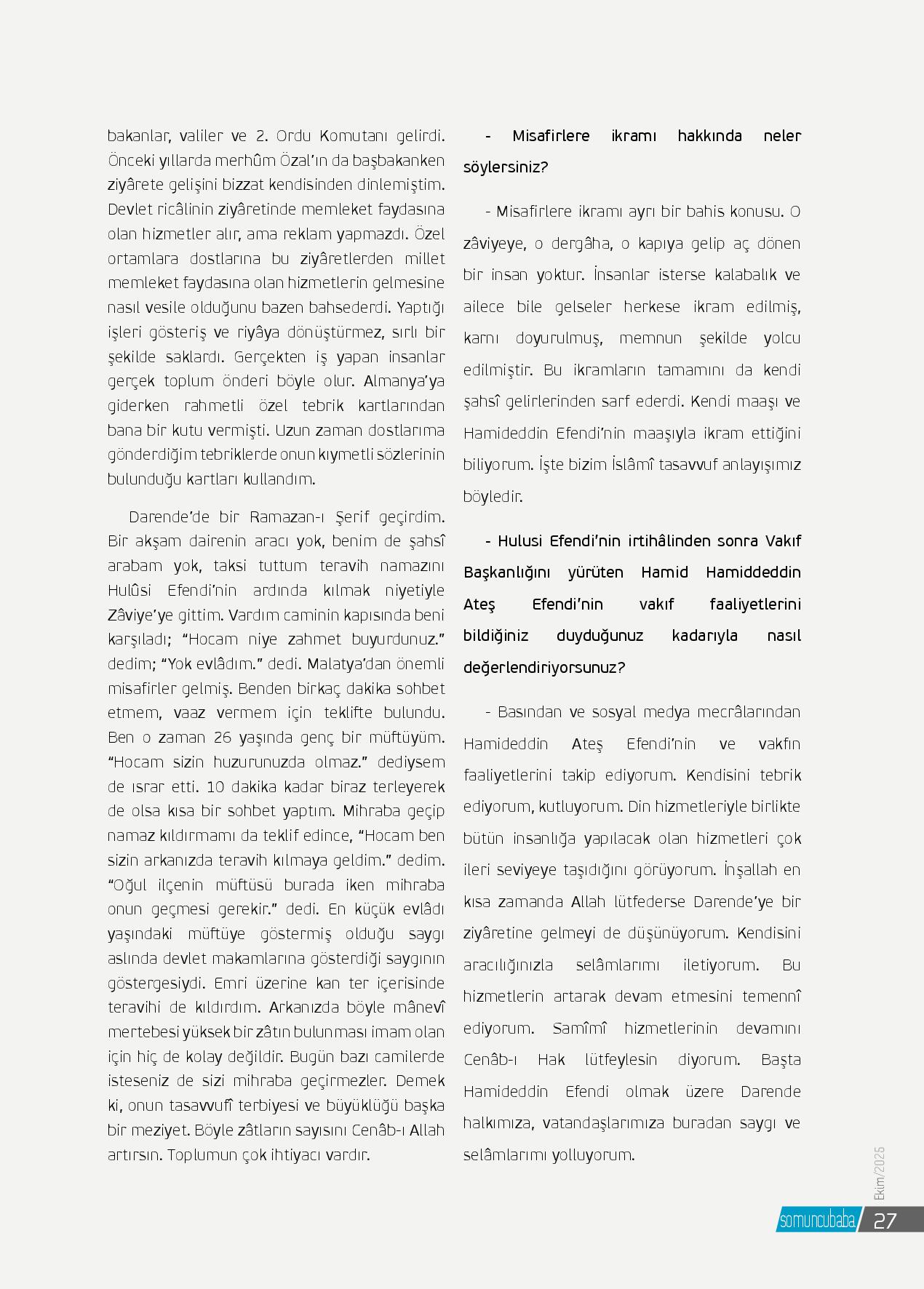 Sakarya İl Müftüsü kıymetli Mehmet Âşık hocamızı ziyâret ettik. 1986-1987 yıllarında Darende Müftülüğü yaptığı için, Es-Seyyid Osman Hulûsi Efendi Hazretler’iyle ilgili hâtıralarını, o günkü Darende’yi Şeyh Hâmid-i Velî Küll...