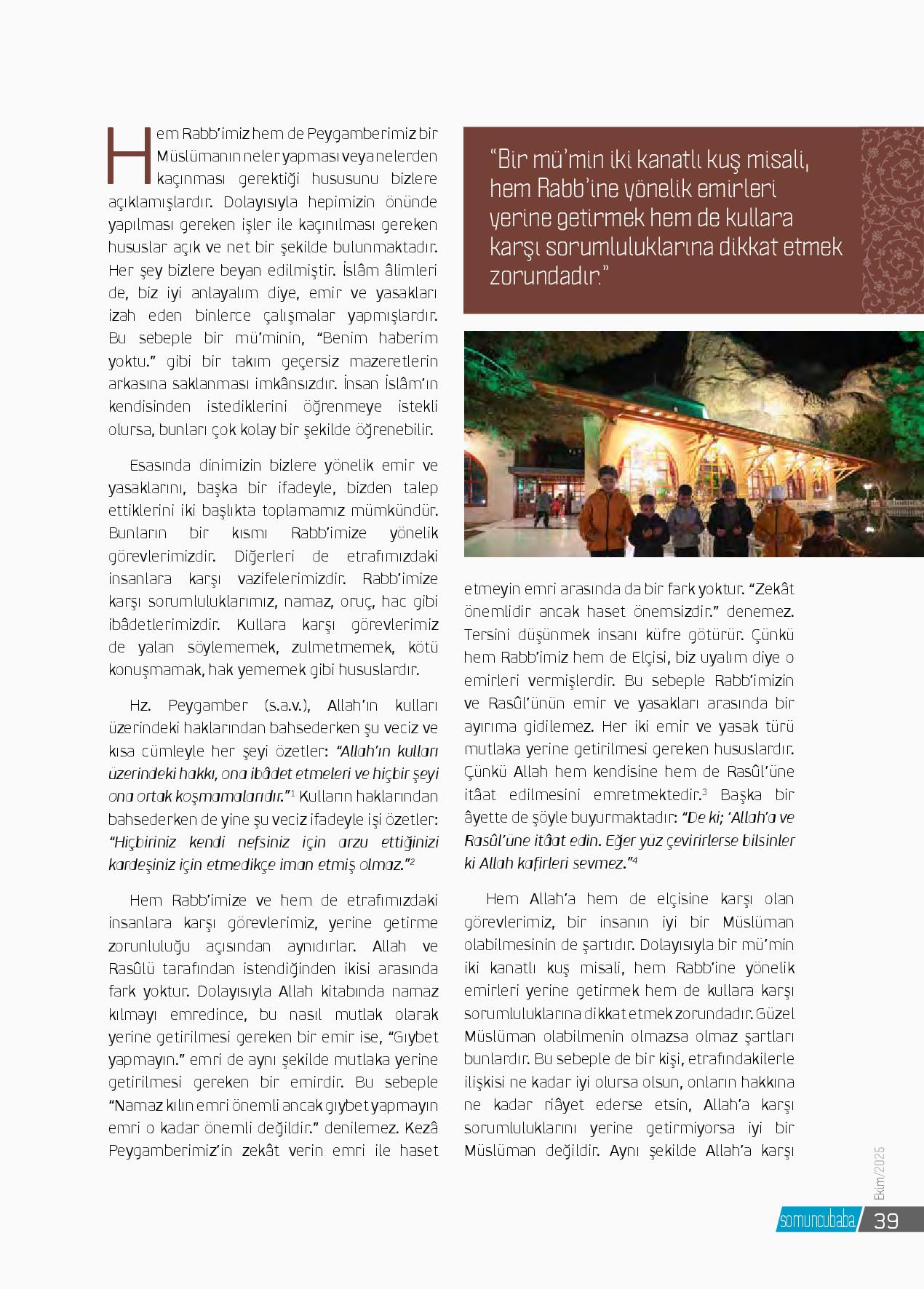 Hem Rabb’imiz hem de Peygamberimiz bir Müslümanın neler yapması veya nelerden kaçınması gerektiği hususunu bizlere açıklamışlardır. Dolayısıyla hepimizin önünde yapılması gereken işler ile kaçınılması gereken hususlar açık ve net bir şekilde bulunmaktadır. Her şey bizlere beyan edi...