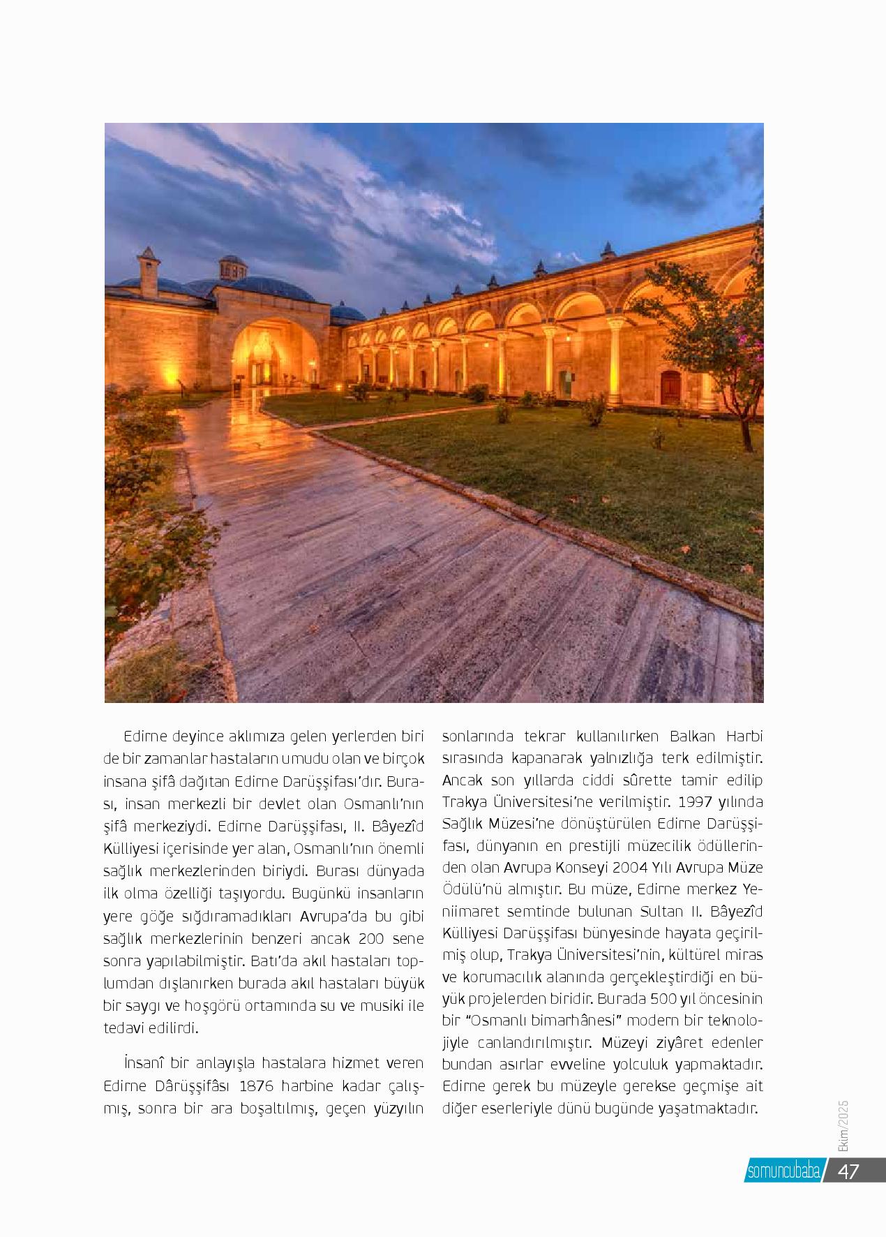 Bir şehir düşünün ki, Osmanlı’nın yükselişine tanıklık etmiş, sultanların hayallerine mekân olmuş, fetihlerden önce mânevî hazırlıkların yapıldığı kutlu bir durak… Evet, bahsettiğimiz şehir Edirne’dir. Tarih boyunca birçok medeniyete ev sahipliği yapm...