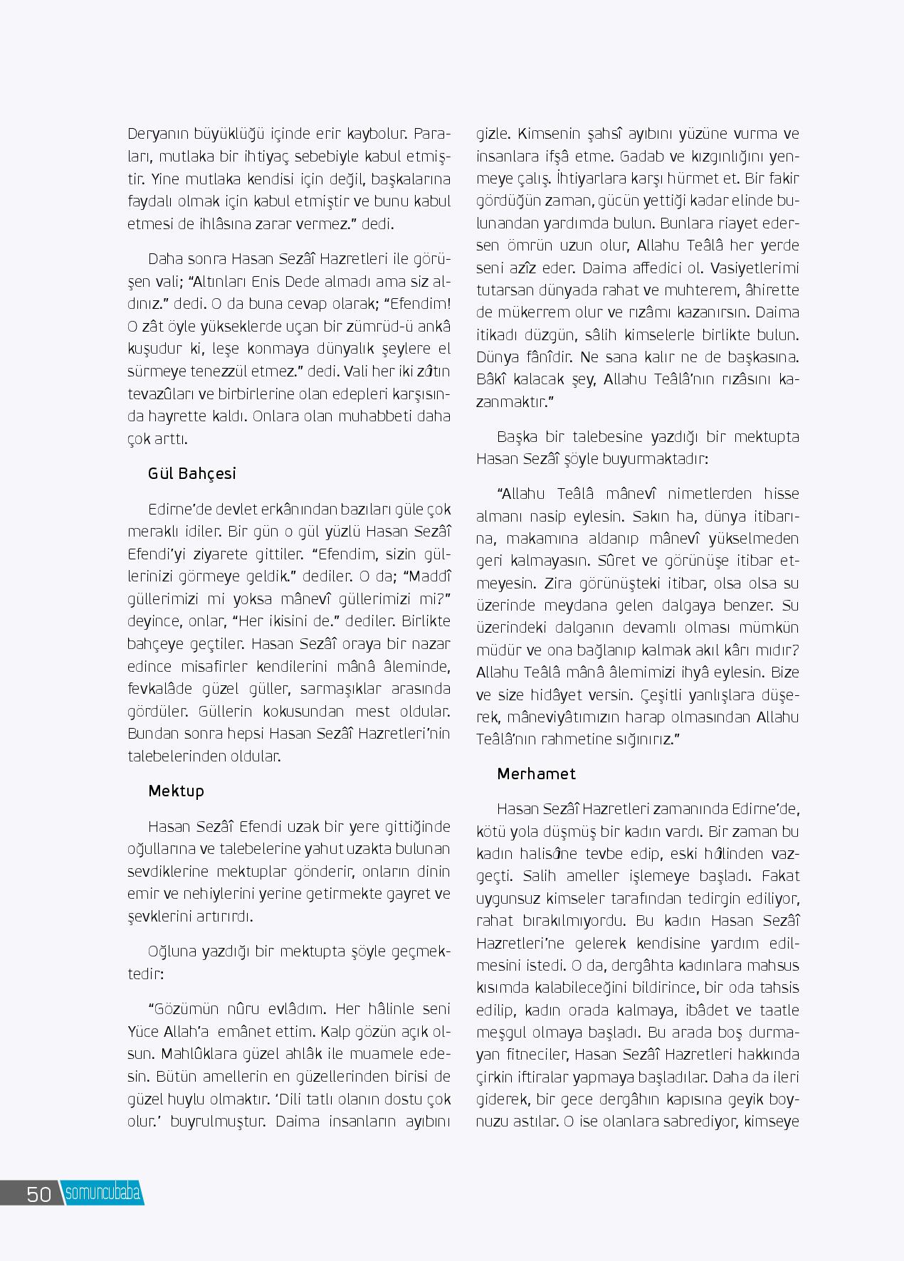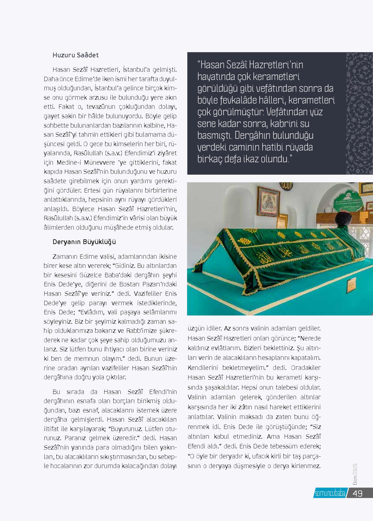 Huzuru SaâdetHasan Sezâî Hazretleri, İstanbul’a gelmişti. Daha önce Edirne’de iken ismi her tarafta duyulmuş olduğundan, İstanbul’a gelince birçok kimse onu görmek arzusu ile bulunduğu yere akın etti. Fakat o, tevazuûnun çokluğundan dola...