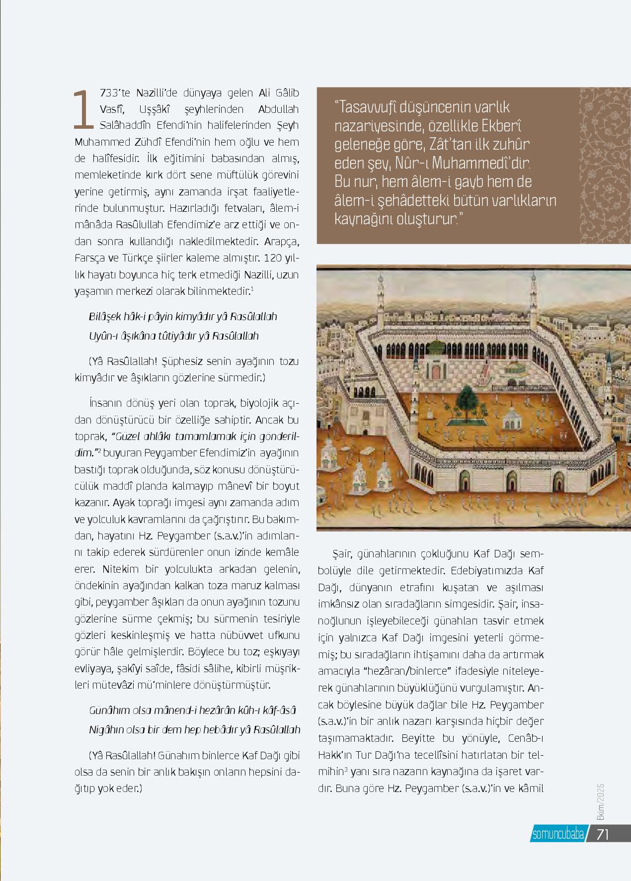 1733’te Nazilli’de dünyaya gelen Ali Gâlib Vasfî, Uşşâkî şeyhlerinden Abdullah Salâhaddîn Efendi’nin halifelerinden Şeyh Muhammed Zühdî Efendi’nin hem oğlu ve hem de halîfesidir. İlk eğitimini babasından almış, memleketinde kırk dört sene müftülük g...