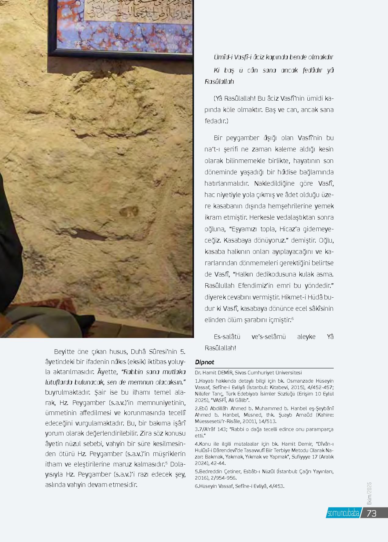 Vasfî’nin Peygamber Efendimiz (s.a.v.)’i Vasfetmesi