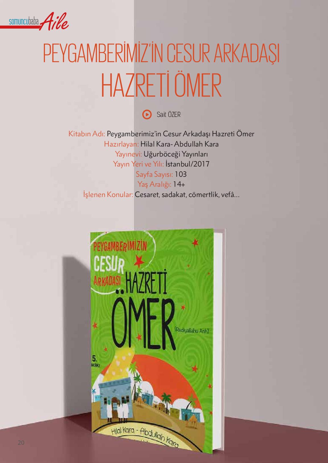 Kitabın adı: Peygamberimiz’in Cesur Arkadaşı Hazreti ÖmerHazırlayan: Hilal Kara- Abdullah KaraYayınevi: Uğurböceği YayınlarıYayın yeri ve yılı: İstanbul/2017Sayfa Sayısı: 103Yaş Aralığı: 14+İşlenen Konular: Cesaret, sadakat, cömertlik, vefâ…Kitabın içindek...