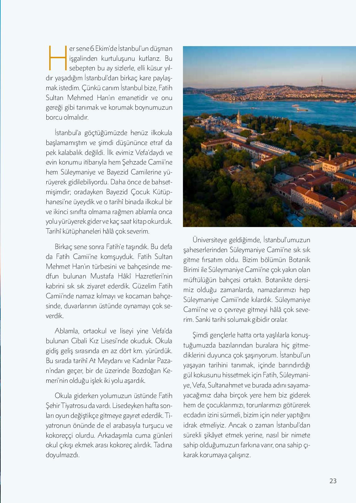 Her sene 6 Ekim’de İstanbul’un düşman işgalinden kurtuluşunu kutlarız. Bu sebepten bu ay sizlerle, elli küsur yıldır yaşadığım İstanbul’dan birkaç kare paylaşmak istedim. Çünkü canım İstanbul bize, Fatih Sultan Mehmed Han’ın emanetidir ve onu gereği gibi tanımak ve korumak boynumuzun b...