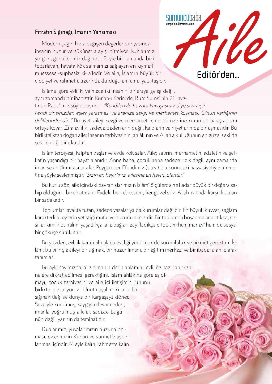 Modern çağın hızla değişen değerler dünyasında, insanın huzur ve sükûnet arayışı bitmiyor. Ruhlarımız yorgun, gönüllerimiz dağınık… Böyle bir zamanda bizi toparlayan, hayata kök salmamızı sağlayan en kıymetli müessese -şüphesiz ki- ailedir. Ve aile, İslam’ın ...