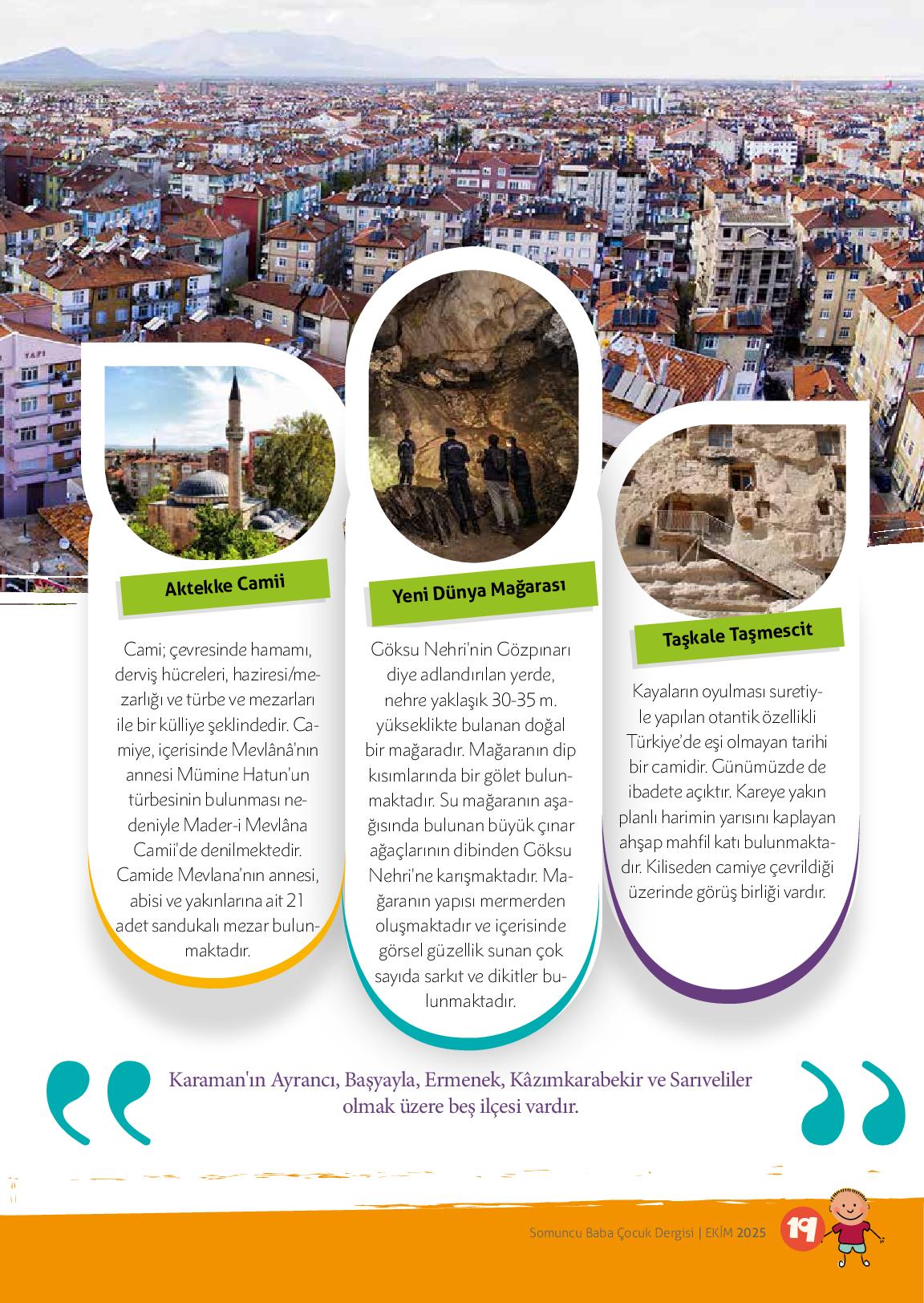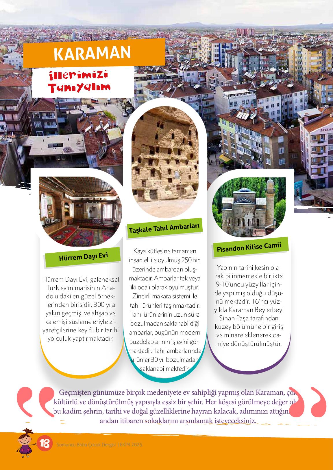 “Geçmişten günümüze birçok medeniyete ev sahipliği yapmış olan Karaman, çok kültürlü ve dönüştürülmüş yapısıyla eşsiz bir şehir. Her köşesi görülmeye değer olan bu kadim şehrin, tarihi ve doğal güzelliklerine hayran kalacak, adımınızı attığınız ilk andan itibaren sokaklarını arşınlamak isteye...