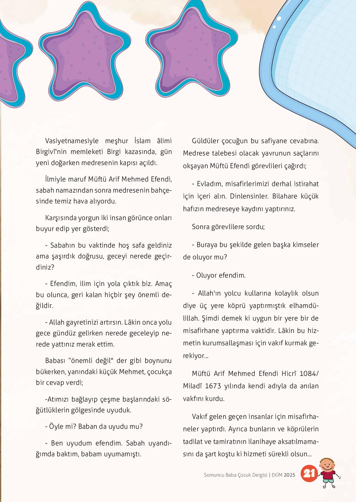 Vasiyetnamesiyle meşhur İslam âlimi Birgivî'nin memleketi Birgi kazasında, gün yeni doğarken medresenin kapısı açıldı.İlmiyle maruf Müftü Arif Mehmed Efendi, sabah namazından sonra medresenin bahçesinde temiz hava alıyordu.Karşısında yorgun iki insan görünce onları buyur edip ...