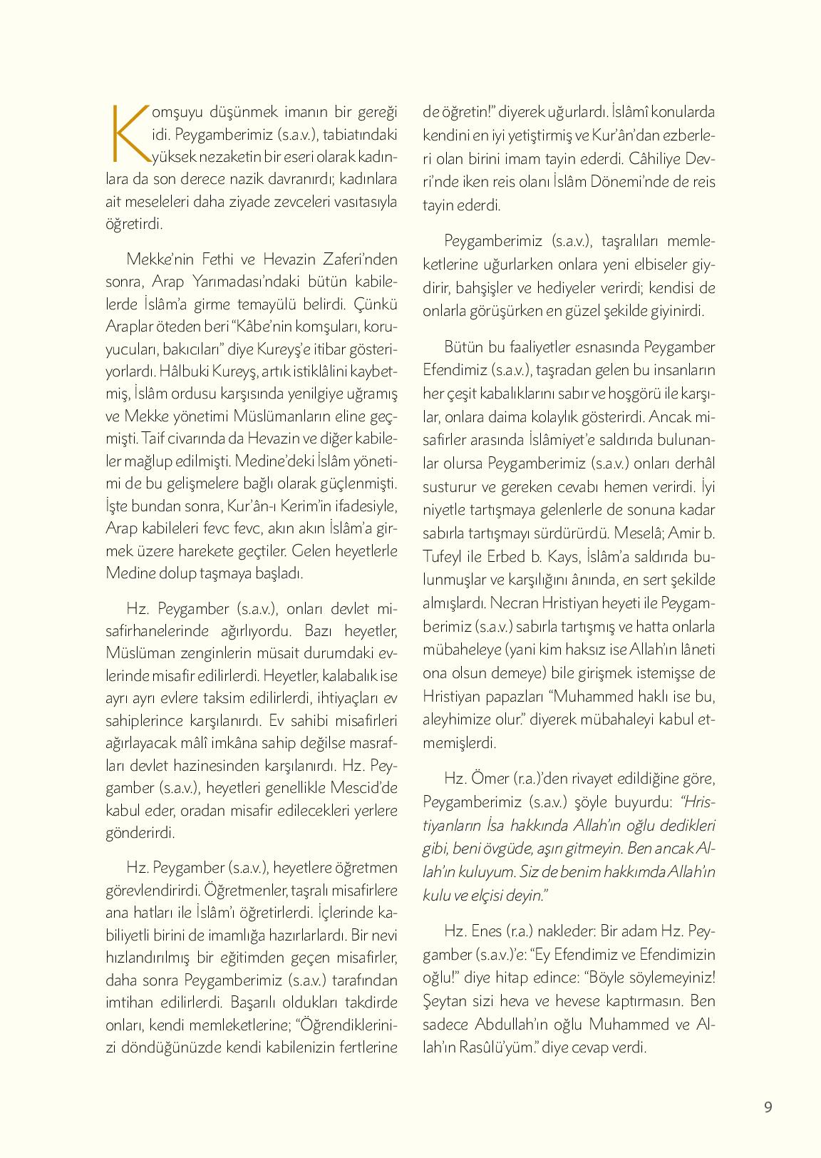Komşuyu düşünmek imanın bir gereği idi. Peygamberimiz (s.a.v.), tabiatındaki yüksek nezaketin bir eseri olarak kadınlara da son derece nazik davranırdı; kadınlara ait meseleleri daha ziyade zevceleri vasıtasıyla öğretirdi.Mekke’nin Fethi ve Hevazin Zaferi’nden ...