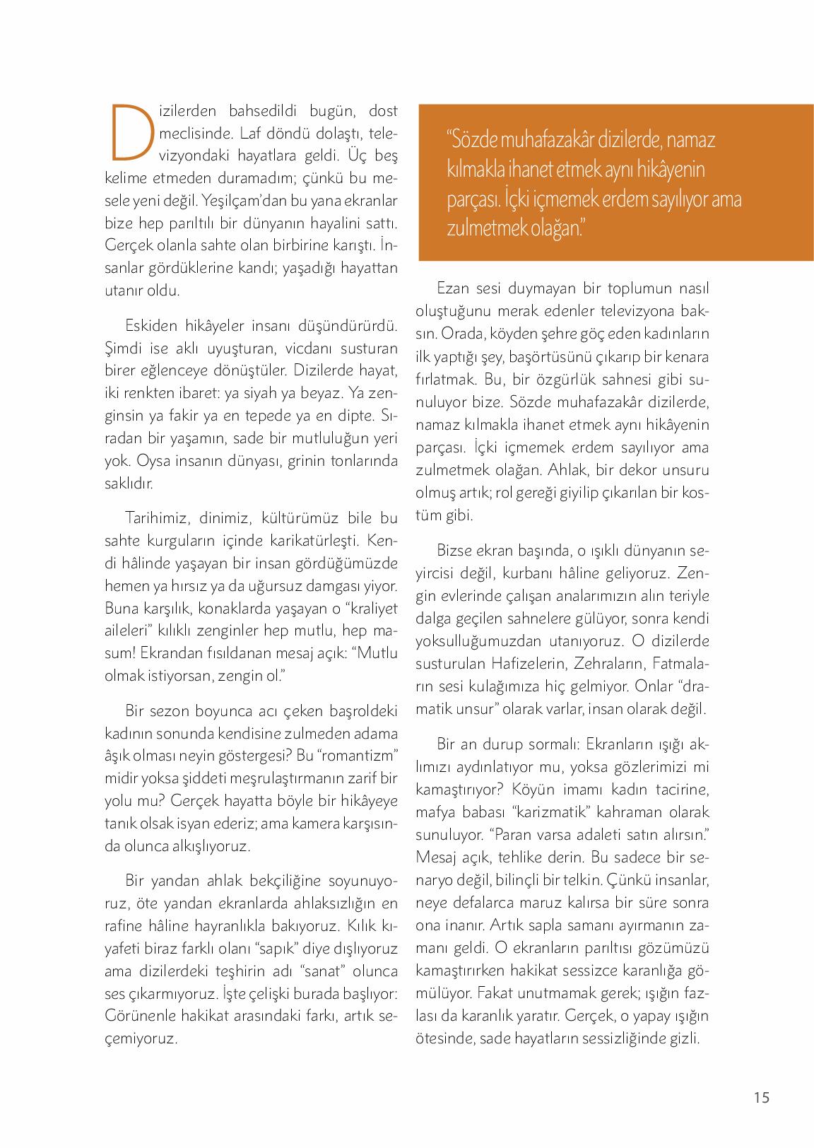Dizilerden bahsedildi bugün, dost meclisinde. Laf döndü dolaştı, televizyondaki hayatlara geldi. Üç beş kelime etmeden duramadım; çünkü bu mesele yeni değil. Yeşilçam’dan bu yana ekranlar bize hep parıltılı bir dünyanın hayalini sattı. Gerçek olanla sahte olan birbi...