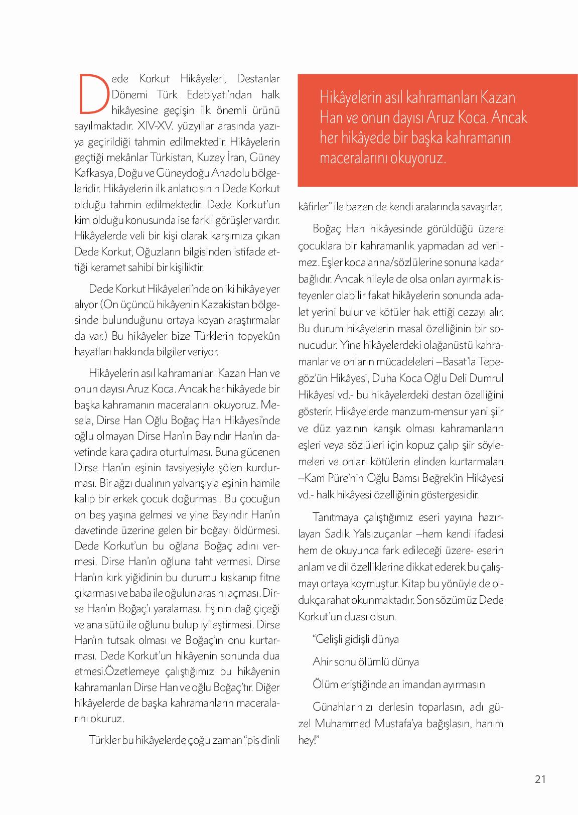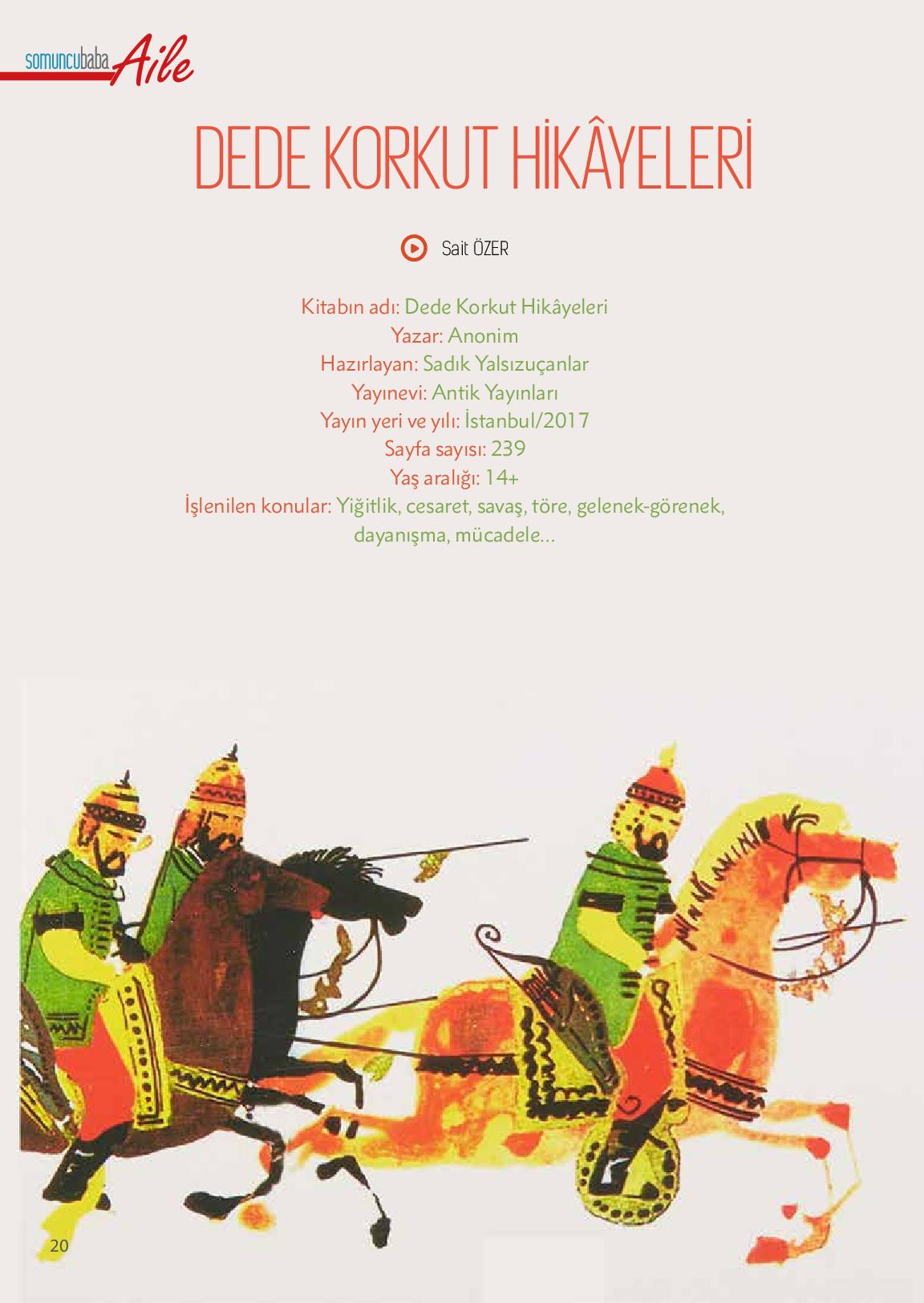 Kitabın adı: Dede Korkut HikâyeleriYazar: AnonimHazırlayan: Sadık YalsızuçanlarYayınevi: Antik YayınlarıYayın yeri ve yılı: İstanbul/2017Sayfa sayısı: 239Yaş aralığı: 14+İşlenilen konular: Yiğitlik, cesaret, savaş, töre, gelenek-görenek, dayanışma, mücadele…Dede Korkut Hikâyele...