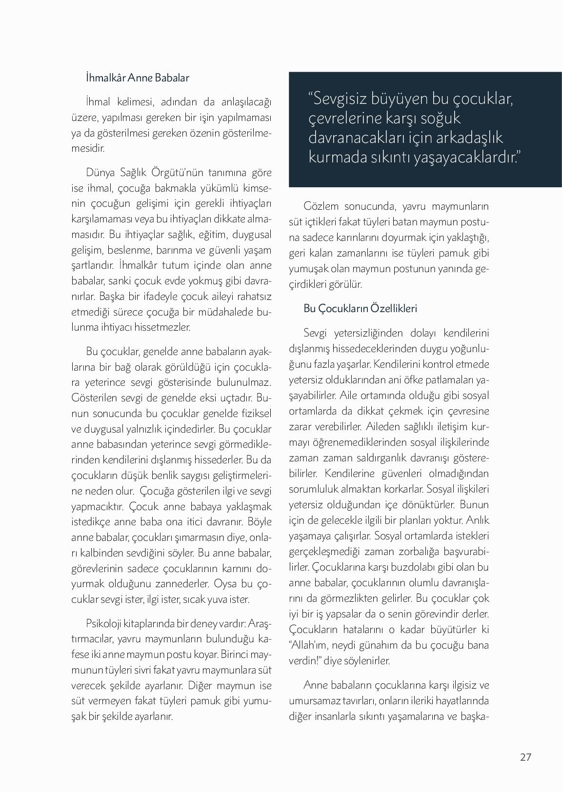 İhmalkâr Anne Babalarİhmal kelimesi, adından da anlaşılacağı üzere, yapılması gereken bir işin yapılmaması ya da gösterilmesi gereken özenin gösterilmemesidir.Dünya Sağlık Örgütü’nün tanımına göre ise ihmal, çocuğa bakmakla yükümlü kimsenin çocuğun gelişimi i...