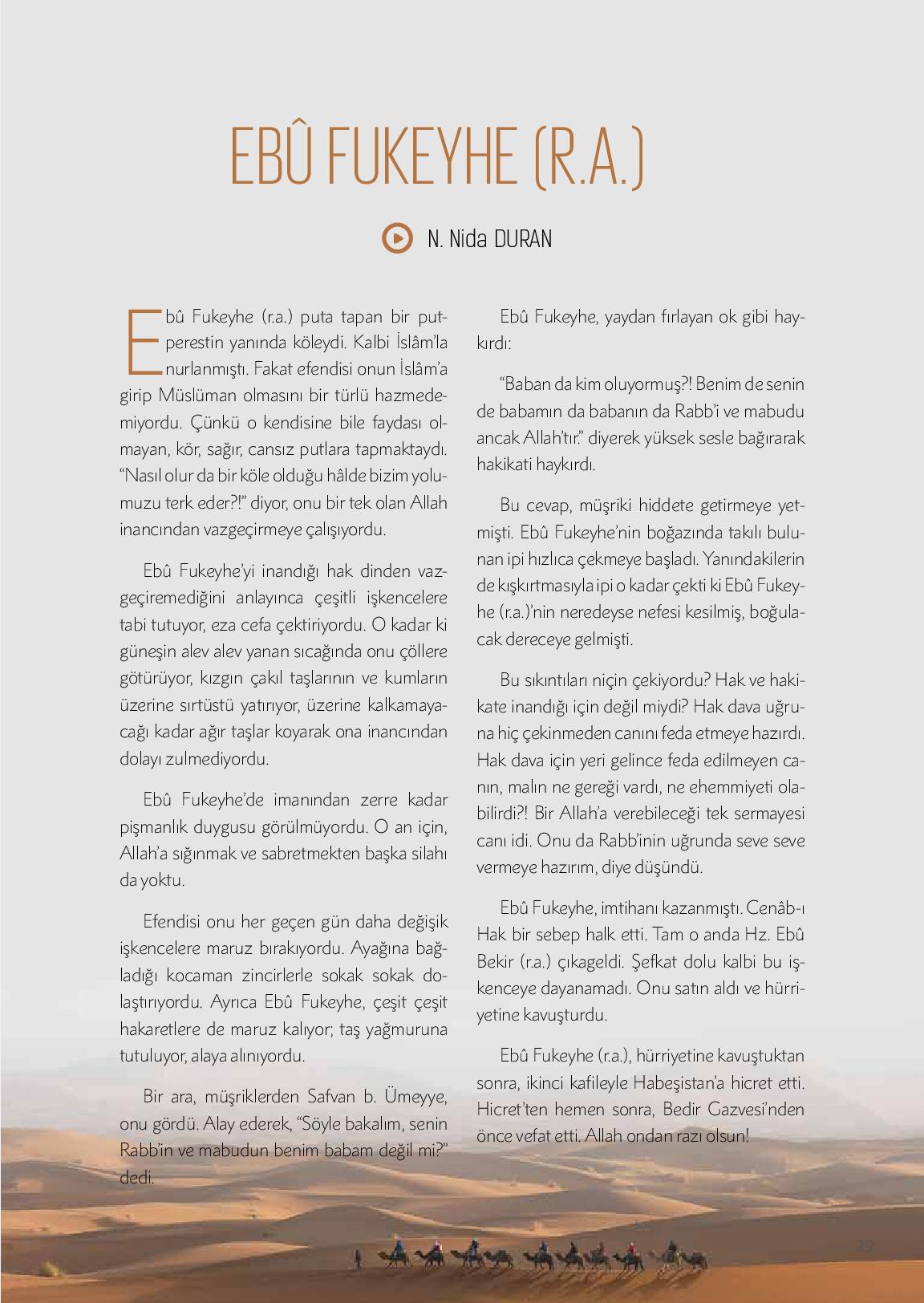 Ebû Fukeyhe (r.a.) puta tapan bir putperestin yanında köleydi. Kalbi İslâm’la nurlanmıştı. Fakat efendisi onun İslâm’a girip Müslüman olmasını bir türlü hazmedemiyordu. Çünkü o kendisine bile faydası olmayan, kör, sağır, cansız putlara tapmaktaydı. “Nasıl olur da bir köle olduğu hâ...