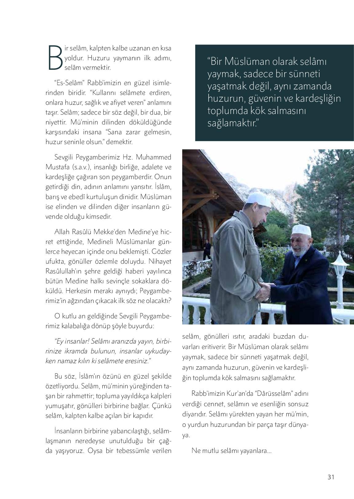 Bir selâm, kalpten kalbe uzanan en kısa yoldur. Huzuru yaymanın ilk adımı, selâm vermektir.“Es-Selâm” Rabb’imizin en güzel isimlerinden biridir. “Kullarını selâmete erdiren, onlara huzur, sağlık ve afiyet veren” anlamını taşır. Selâm; sadece bir söz değil,...